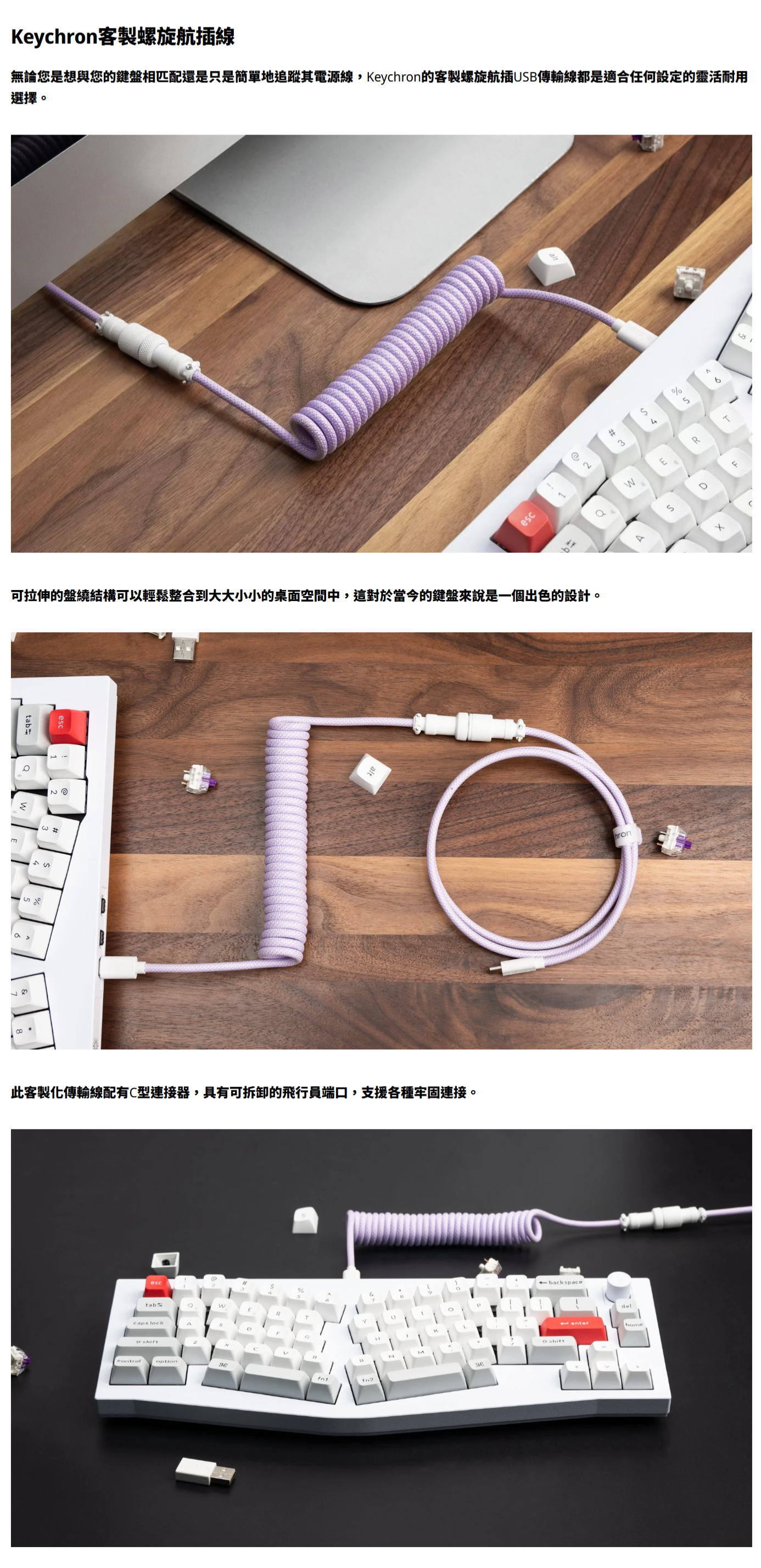 Keychron 客製螺旋航插線 鍵盤傳輸線 黃色 (直頭)