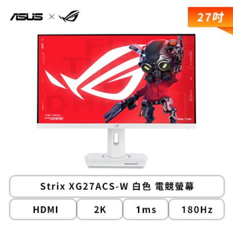 【27型】華碩 ROG Strix XG27ACS-W 白色 電競螢幕 (DP/HDMI/Type-C/Fast IPS/2K/1ms/180Hz/G-Sync/HDR400/可變超頻驅動 2.0/133% sRGB/可升降/可旋轉/無喇叭/三年保固)