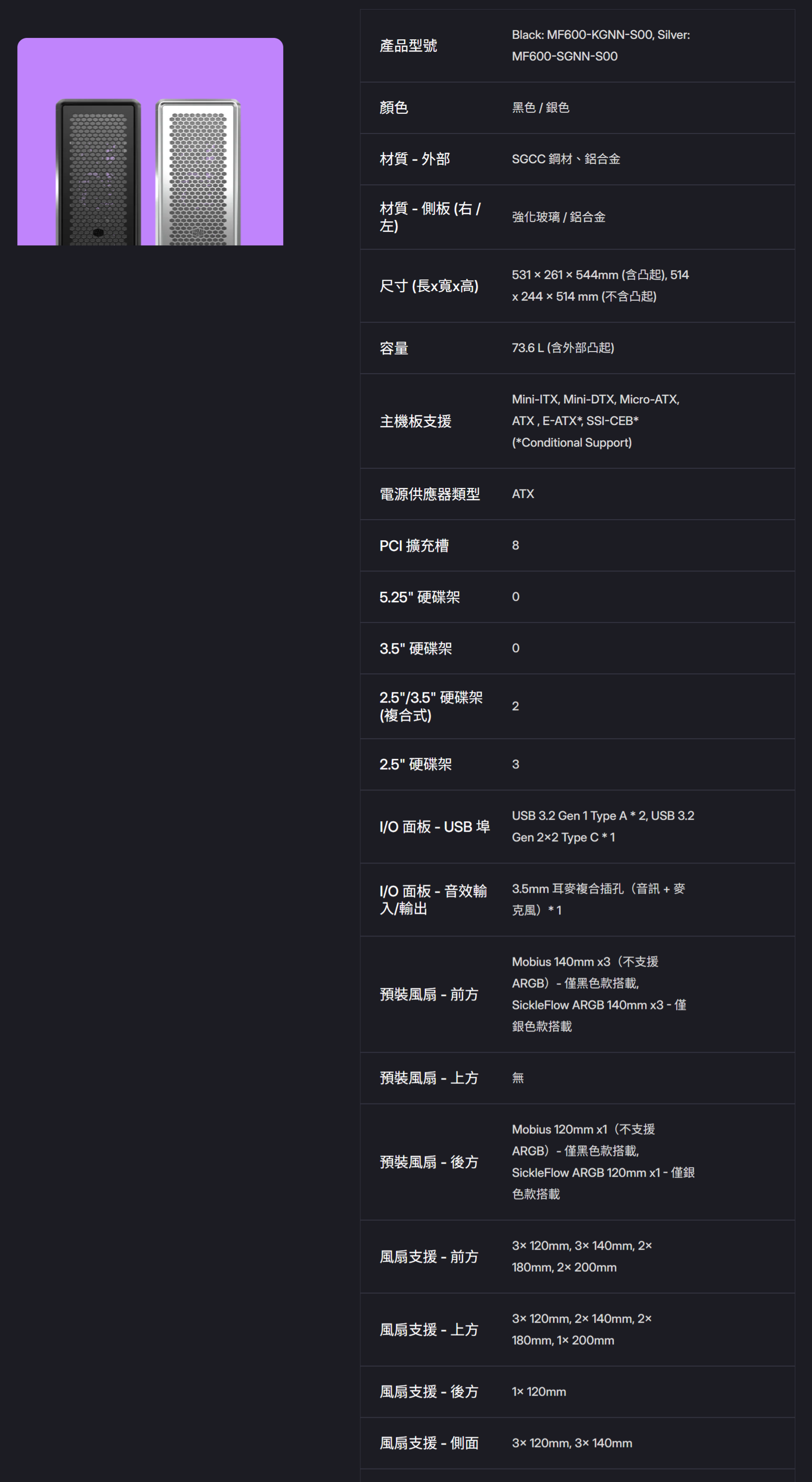 酷碼 MasterFrame 600 機殼水冷電源組 (內附MasterLiquid 360 Atmos II 水冷散熱器(五年保)+V Platinum 1300 V2 白金電源供應器(10年保))