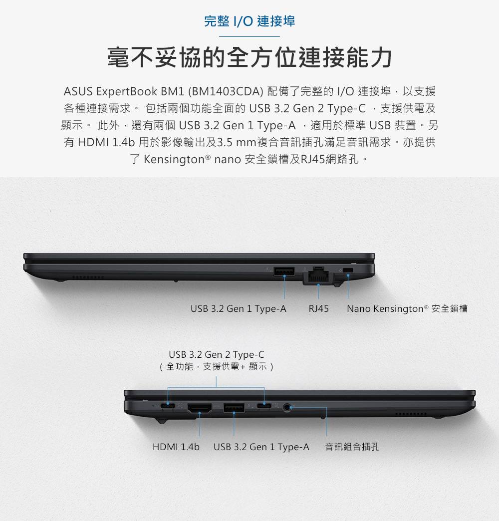 ASUS ExpertBook BM1 華碩商用筆電/R5-7535U/16G D5/1TB SSD/14吋 FHD/Win11 Pro/3年國際保+3年到府維修/BM1403CDA-0161A7535U