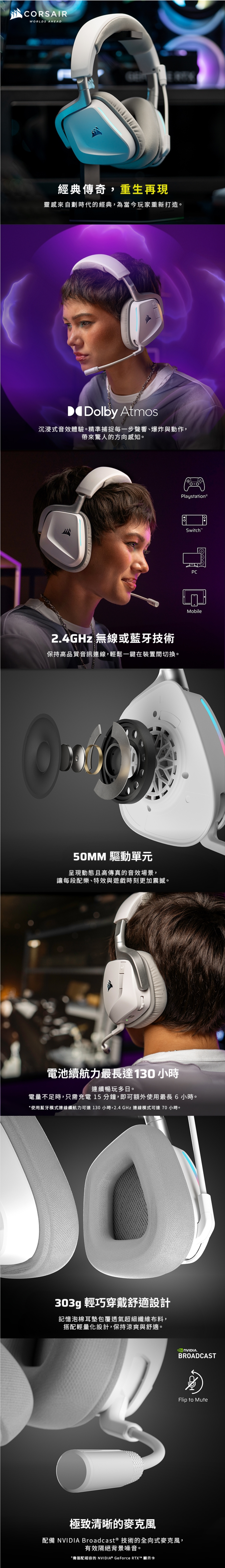海盜船CORSAIR VOID V2 天行者RGB無線耳機麥克風【白】