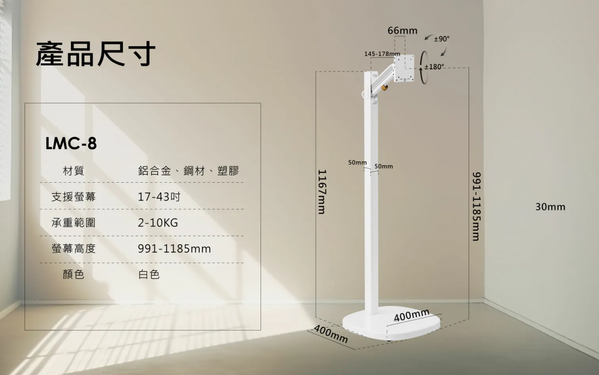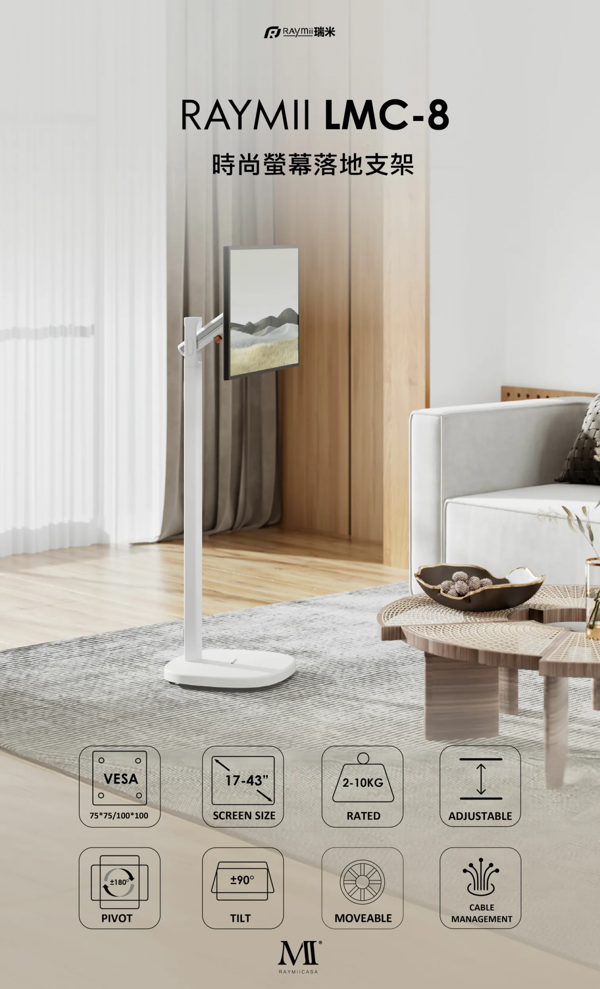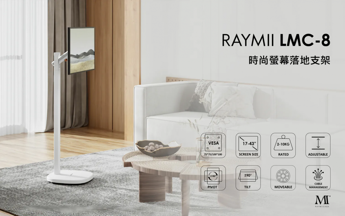 Raymii 瑞米 LMC-8 移動式時尚落地螢幕托盤支架 (適用17-43吋/最大載重10kg)