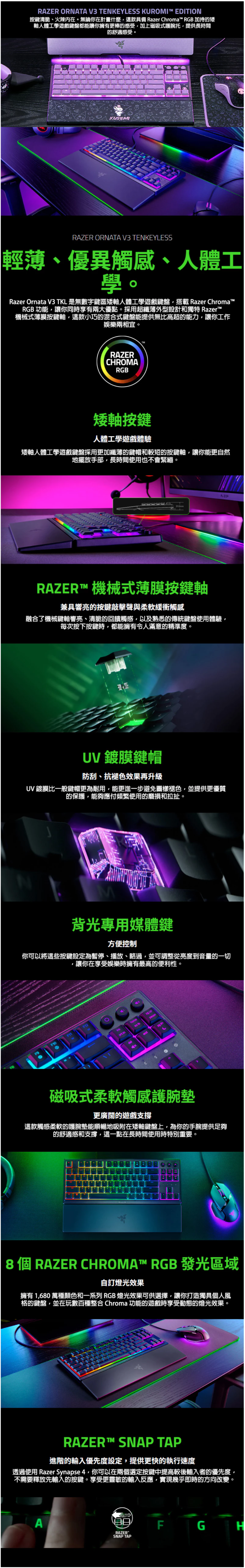 Razer 雨林狼蛛 V3 短軸鍵盤 酷洛米版