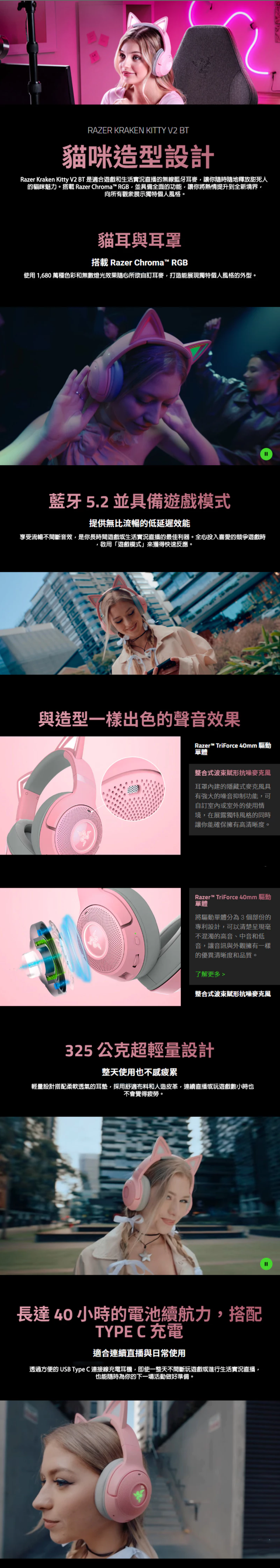 Razer 北海巨妖 Kitty V2 無線藍牙 RGB 耳麥 (白)