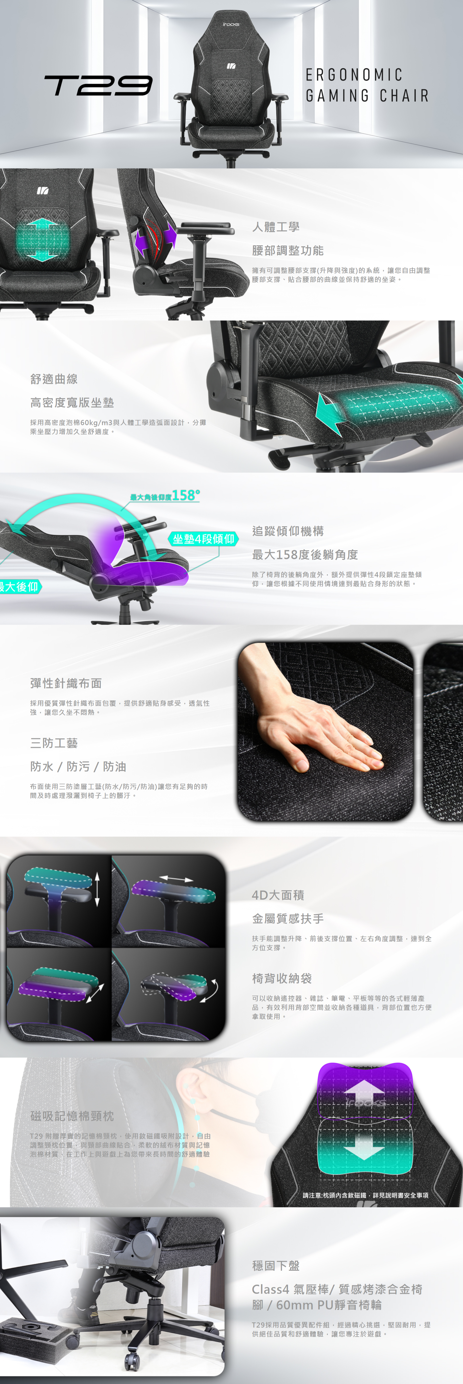 i-Rocks 艾芮克T29 旗艦工學椅 電腦椅 辦公椅-黑色