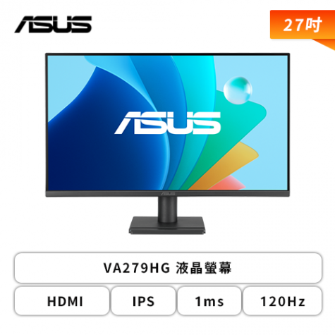 【27型】華碩 VA279HG 液晶螢幕 (HDMI/VGA/IPS/1ms/120Hz/Adaptive Sync/不閃屏/低藍光/無喇叭/三年保固)