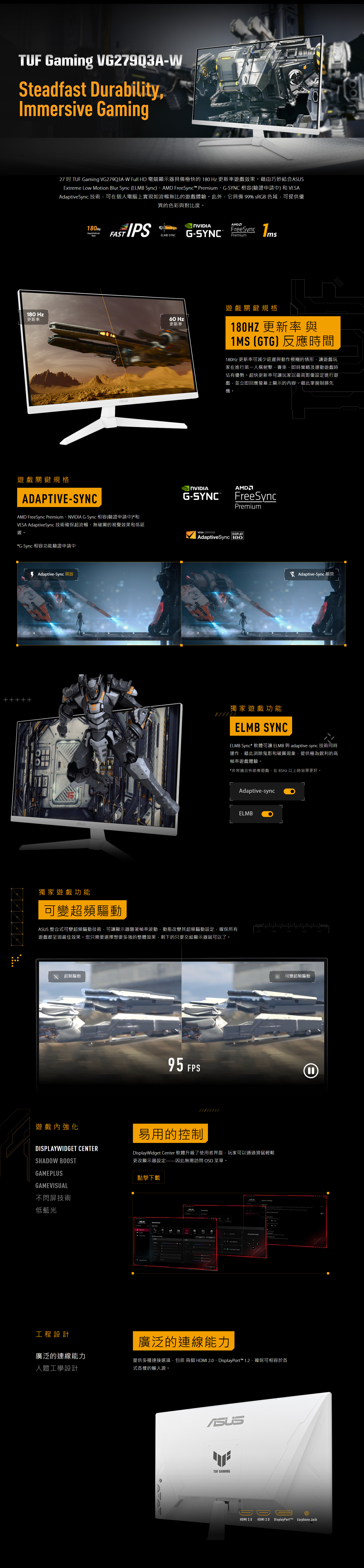 ▶ASUS Extreme Low Motion Blur Sync (ELMB Sync) 技術可讓 ELMB 與可變更新率技術同時運作以消除殘影及破圖的情形,並透過高畫格率提供銳利的遊戲影像