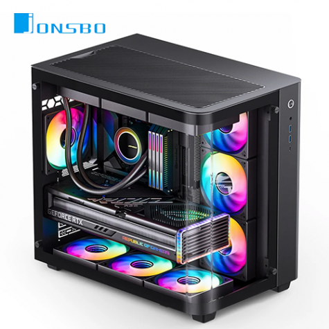 JONSBO 喬思伯 TK3 黑 全景玻璃機殼 (ATX/Type-C/內建風扇側3後1/曲面環景玻璃/支援背插主板/顯卡420mm/塔散165mm)