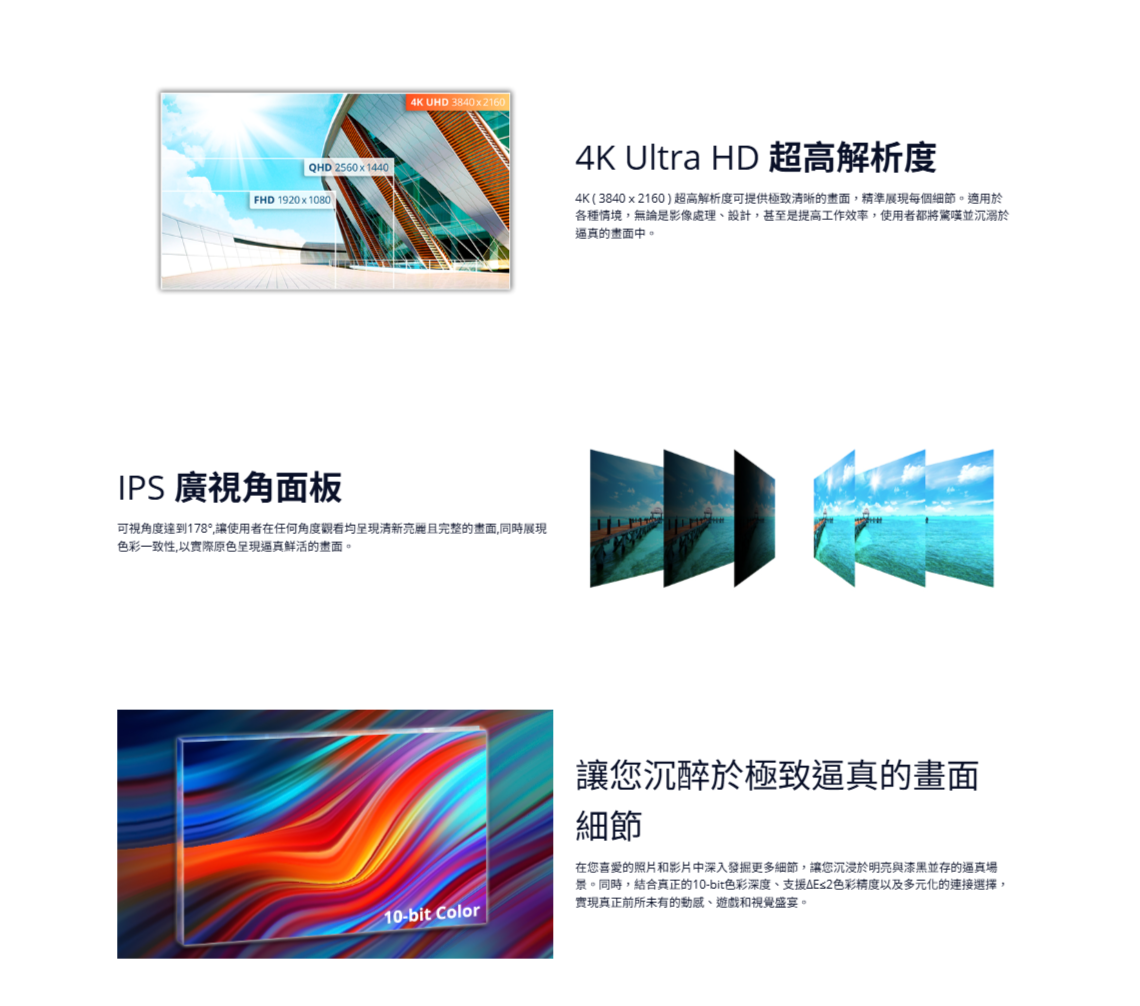 最佳解析度 3840 × 2160 @ 60Hz – DisplayPort, HDMI