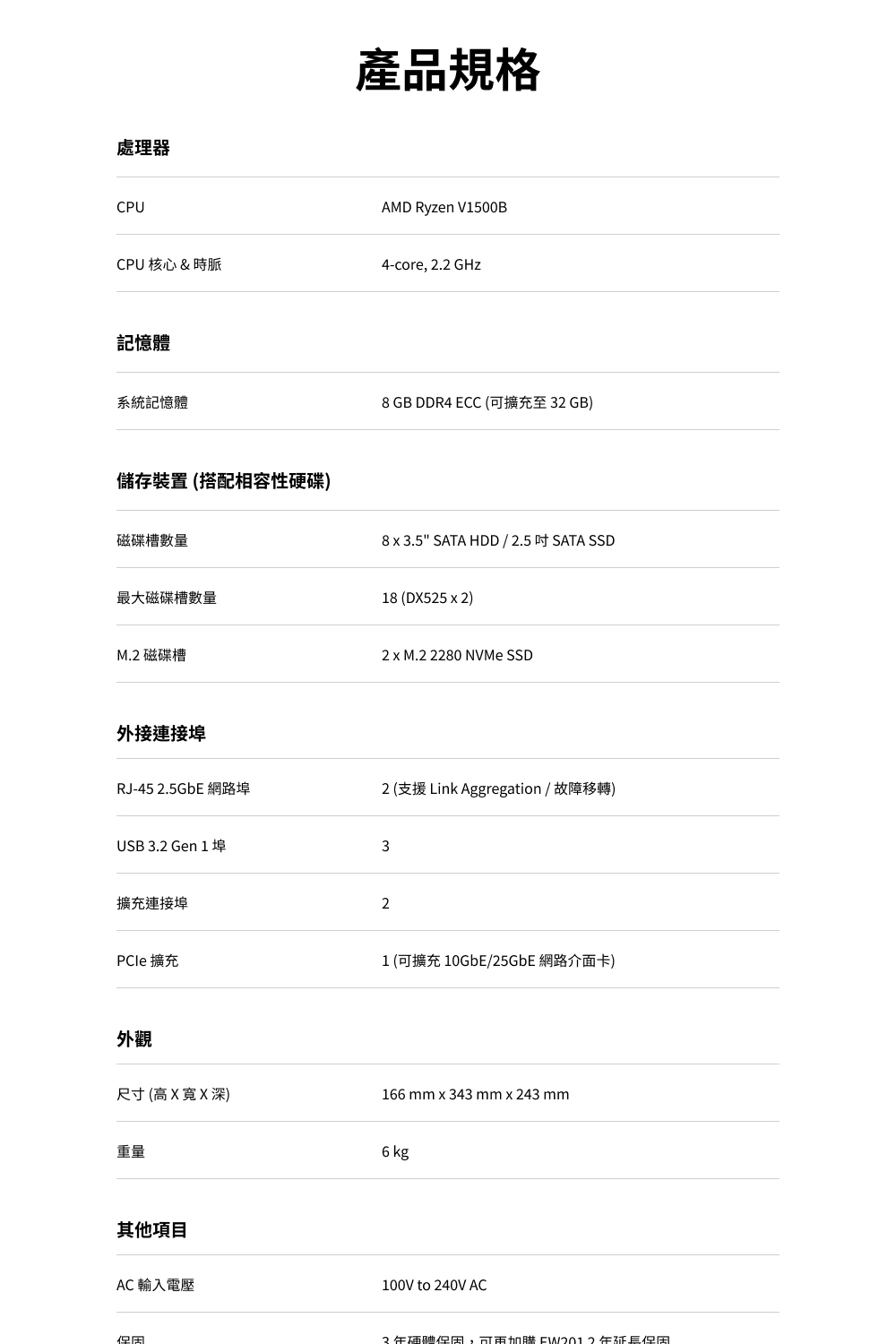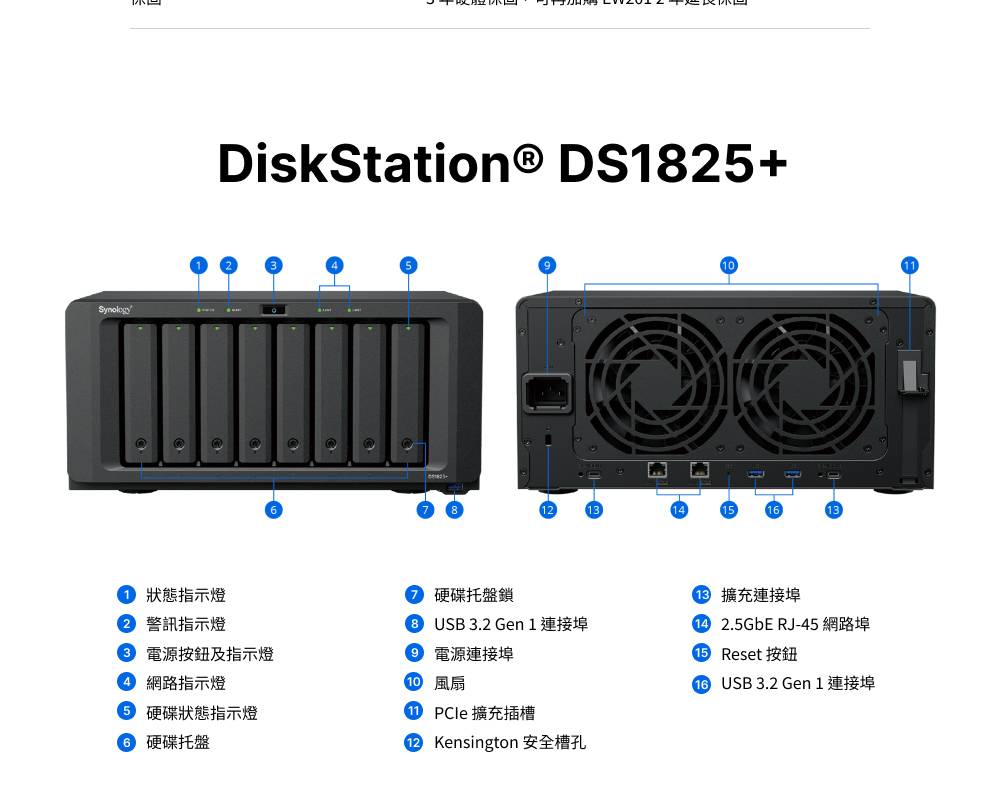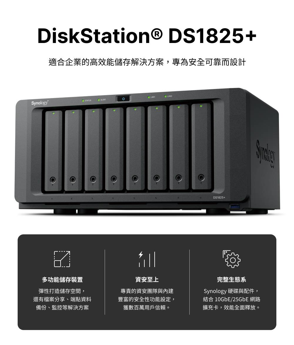 Synology 群暉 DS1825+ 8Bay NAS 網路儲存伺服器/AMD 四核心/8GB