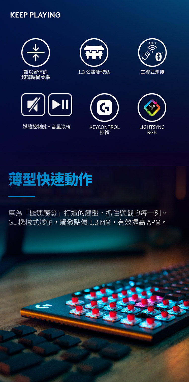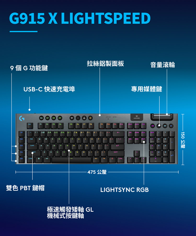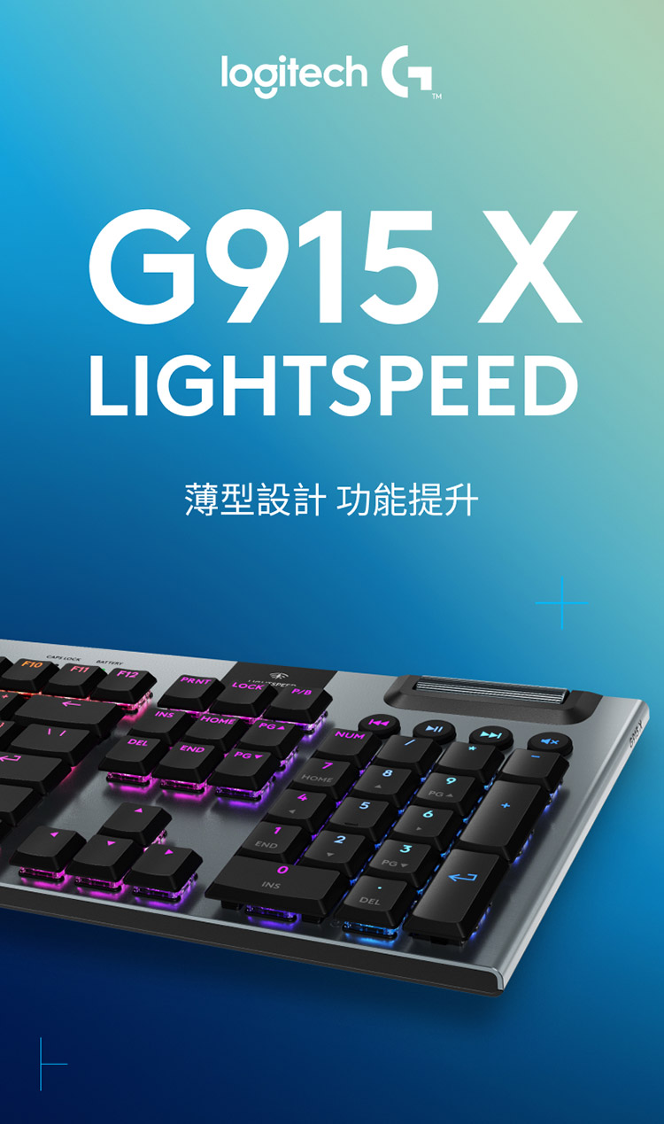 羅技 G915 X LIGHTSPEED RGB 無線機械式遊戲電競鍵盤 線性軸 - 黑