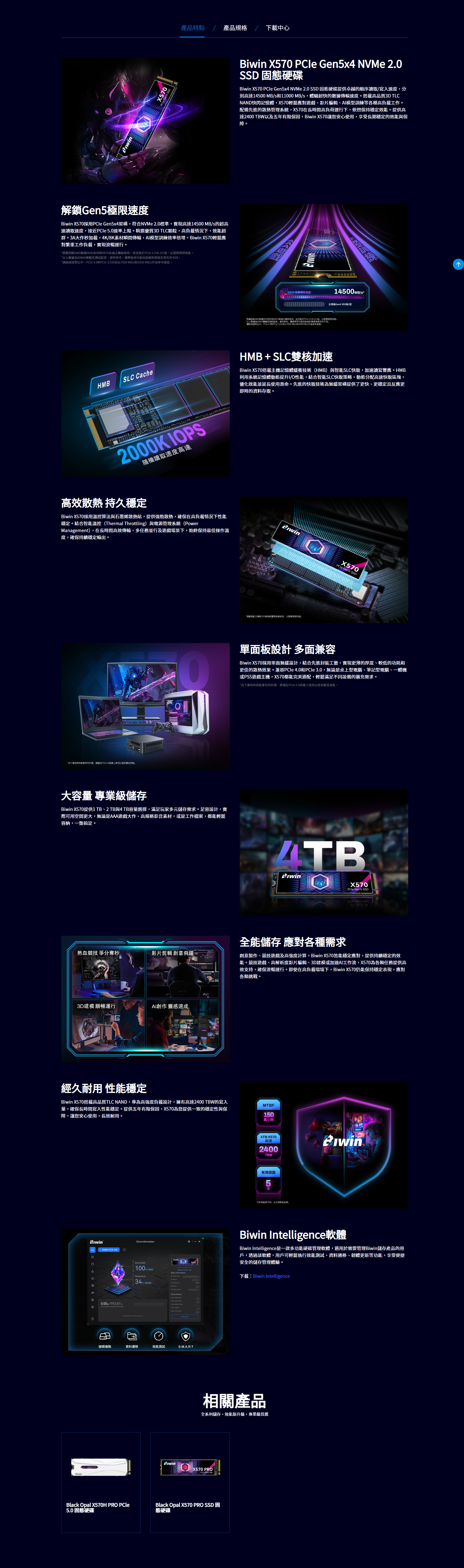 佰維 Biwin X570 2TB/M.2 PCIe Gen5/讀:14500M/寫:10000M/TLC/單面設計/五年保