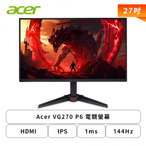 【27型】Acer VG270 P6 電競螢幕 (DP/HDMI/D-Sub/IPS/1ms/144Hz/FreeSyn/不閃屏/低藍光/內建喇叭/三年保固)