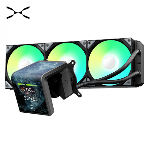 TRYX Panorama SE 360 ARGB 黑 (360mm/6.5″AMOLED曲面水冷頭/可變角度設計/12cm風扇*3/Asetek/6年保固/螢幕2年保)