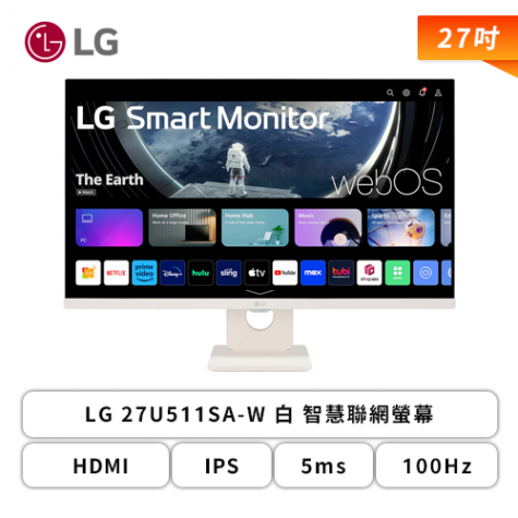 【27型】LG 27U511SA-W 白 智慧聯網螢幕 (HDMI/IPS/5ms/100Hz/HDR10/搭載webOS 24/支援WiFi+藍芽/附智慧滑鼠遙控器/內建喇叭/三年保固)