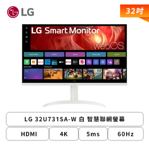 【32型】LG 32U731SA-W 白 智慧聯網螢幕 (HDMI/Type-C(65W)/Type-A/IPS/4k/5ms/60Hz/HDR10/搭載webOS 24/支援WiFi+藍芽/附智慧滑鼠遙控器/內建喇叭/三年保固)