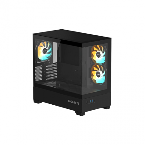 技嘉 C201 PANORAMIC 黑 全景玻璃機殼 (M-ATX/內建風扇側2後1/無A柱/顯卡410mm/塔散190mm)