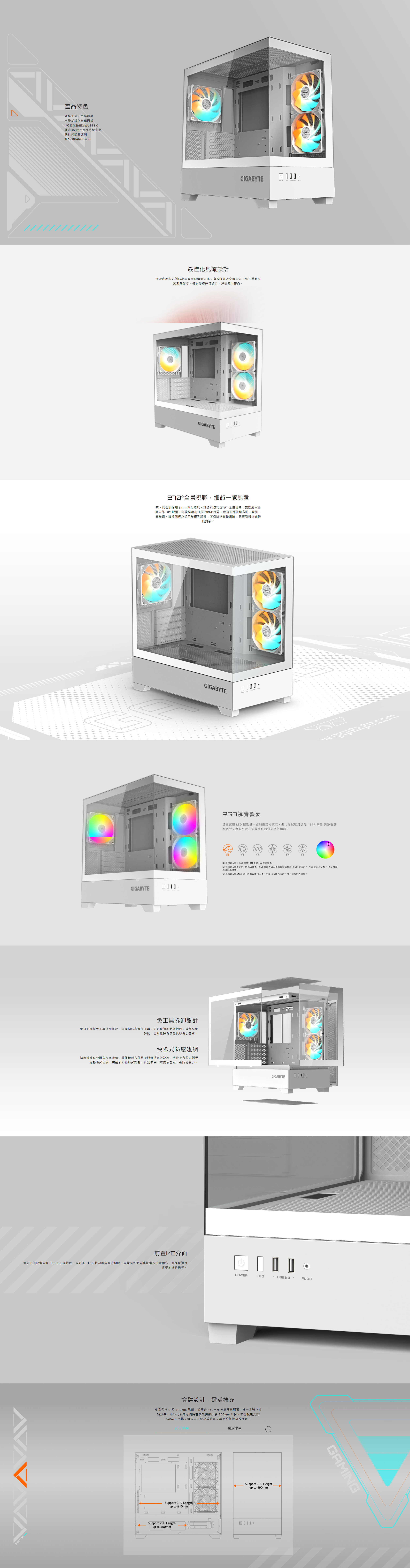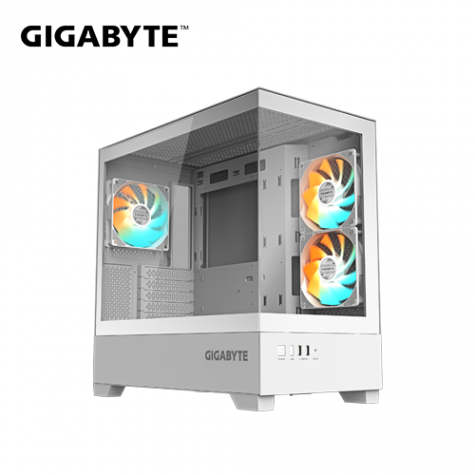 技嘉 C201 PANORAMIC 白 全景玻璃機殼 (M-ATX/內建風扇側2後1/無A柱/顯卡410mm/塔散190mm)