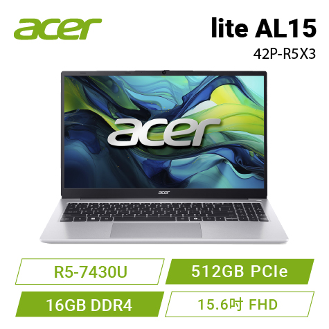 acer lite AL15-42P-R5X3 銀 宏碁高效能筆電/R5-7430U/16GB DDR4/512GB PCIe/15.6吋 FHD 1920 x 1080/W11/不包含包包及滑鼠/NX.D34TA.001