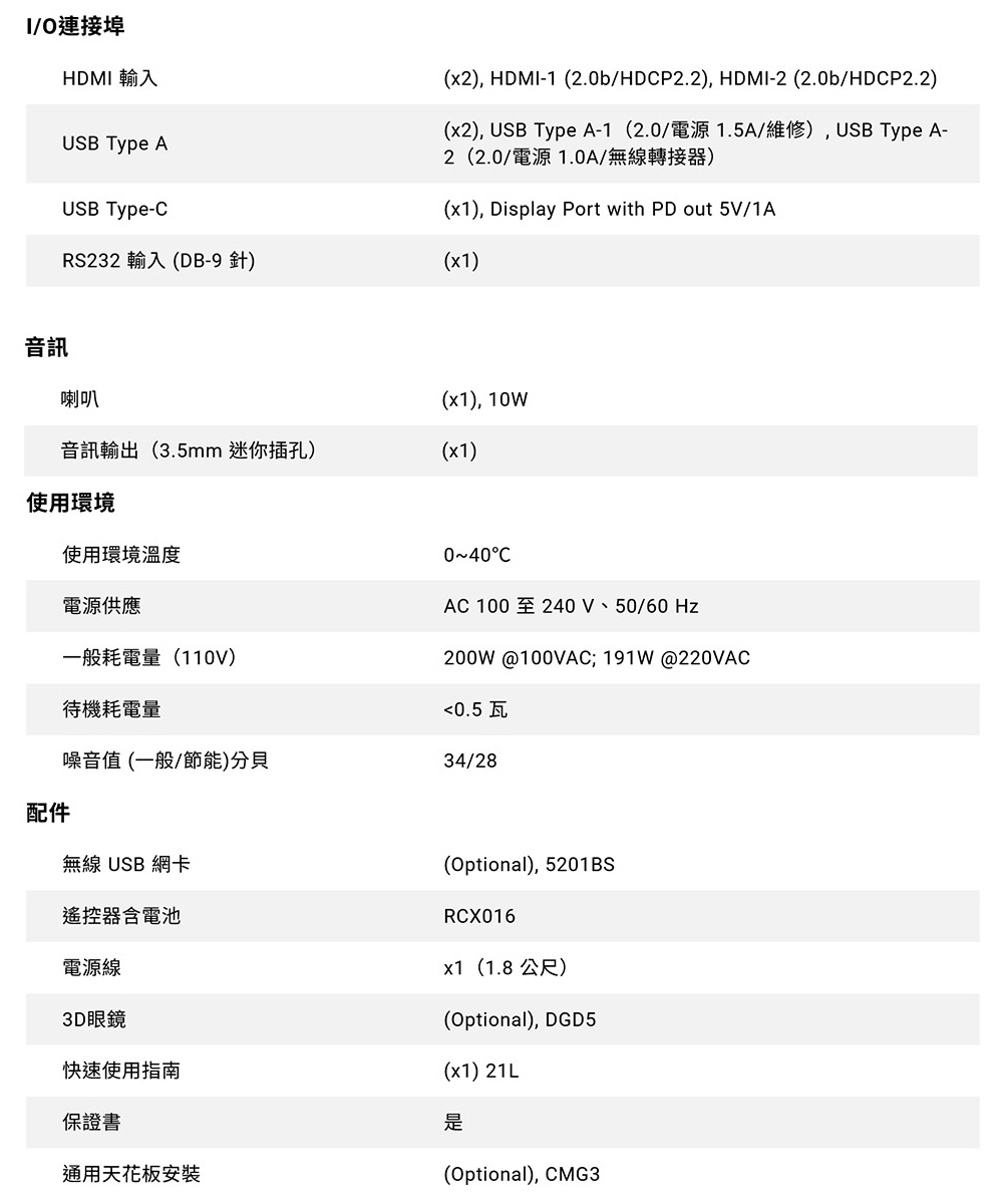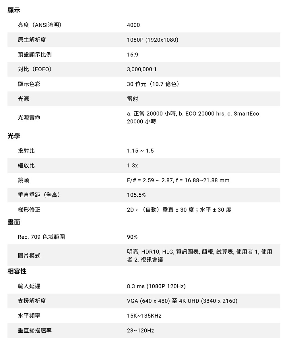 BenQ LH650 1080P 雷射高亮會議室投影機/1080p/4,000流明
