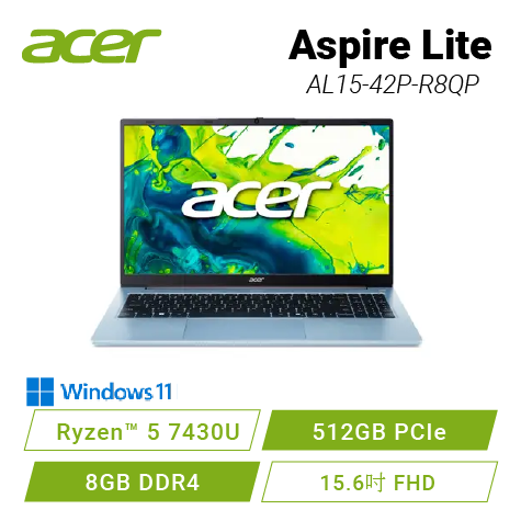 acer lite AL15-42P-R8QP 藍 宏碁高效能筆電/R5-7430U/8GB DDR4/512GB PCIe/15.6吋 FHD 1920 x 1080/W11/不包含包包及滑鼠/NX.D5BTA.001