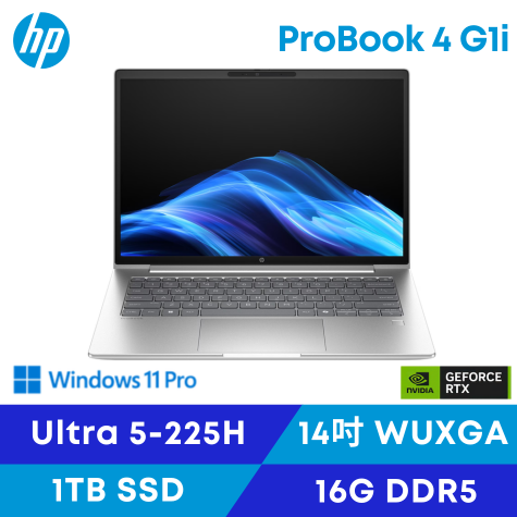 HP ProBook 4 G1i 惠普商用筆電/Ultra5-225H/16G D5/1TB SSD/RTX3050/14吋