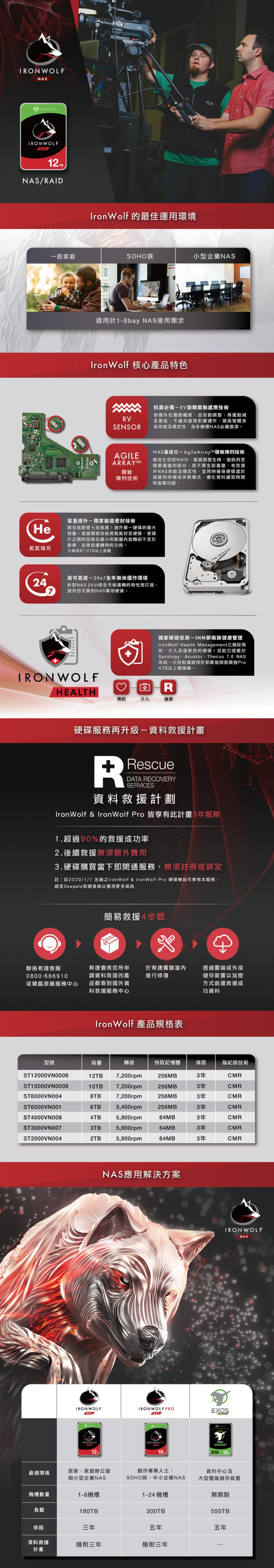 【IronWolf NAS碟】Seagate 8TB 5400轉/256MB/3.5吋/三年保固+資料救援 (ST8000VN002) 【限組裝】