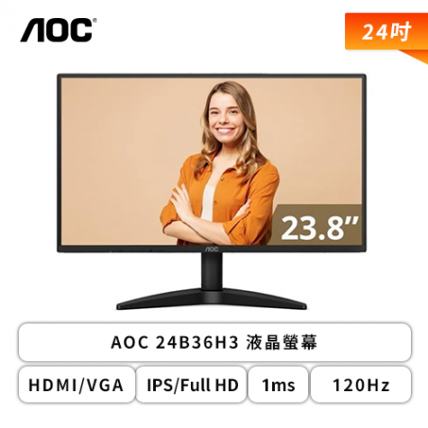 【24型】AOC 24B36H3 液晶螢幕 (HDMI/VGA/IPS/1ms/120Hz/AdaptiveSync/不閃屏/低藍光/無喇叭/三年保固)