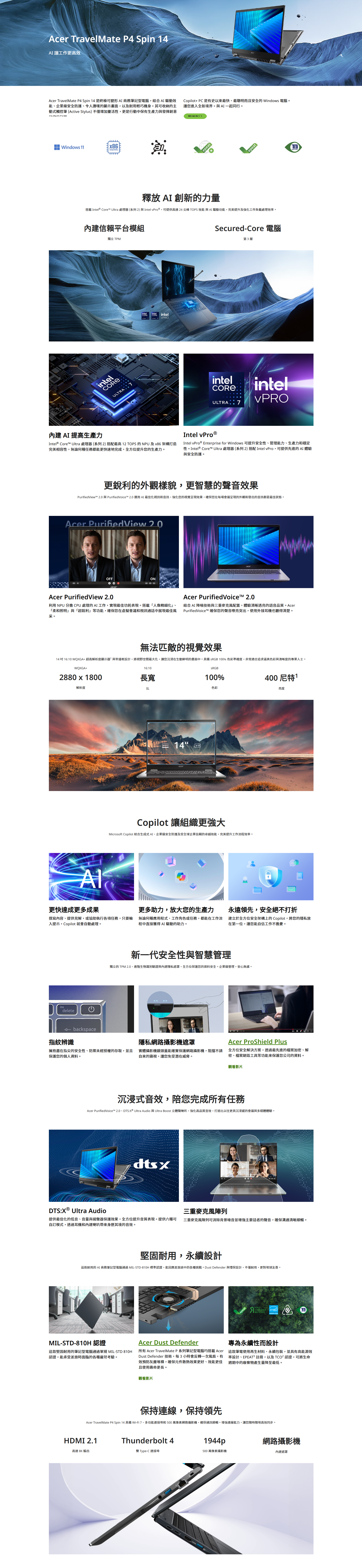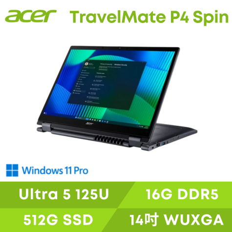 acer TravelMate P4 Spin 宏碁翻轉觸控商用筆電/Ultra5-125U/16G D5/512G SSD/14吋 WUXGA/Win11 Pro/3年到府收送保固/TMP414RN-54-52K3