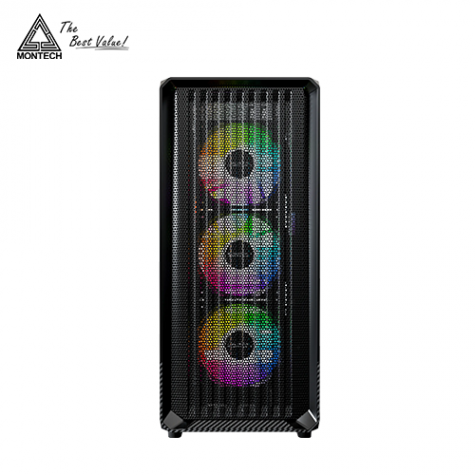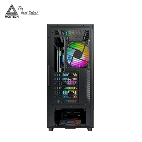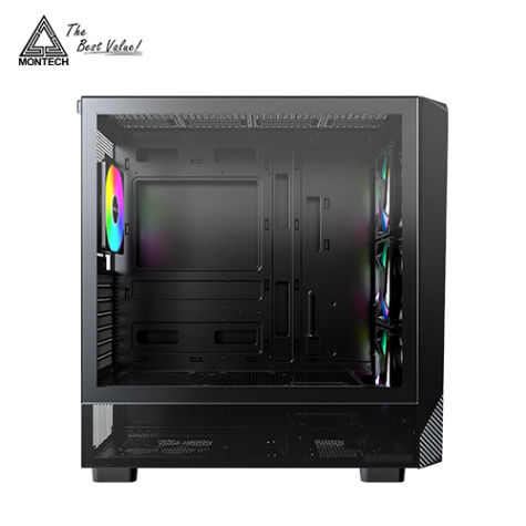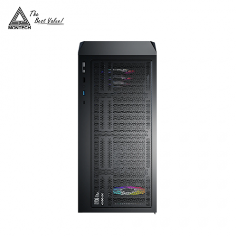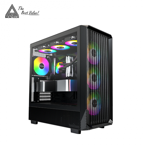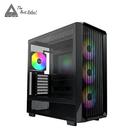 MONTECH X5 黑 玻璃透側機殼 (E-ATX/Type-C/內建風扇前3後1/ARGB風扇/網孔面板/內建顯卡支撐架/顯卡410mm/塔散165mm)