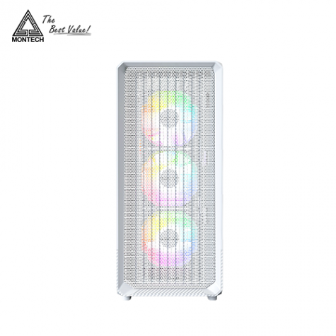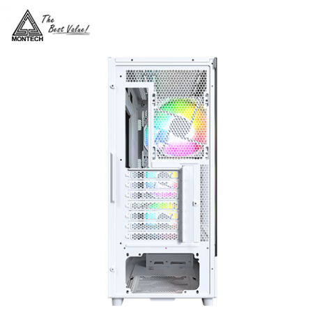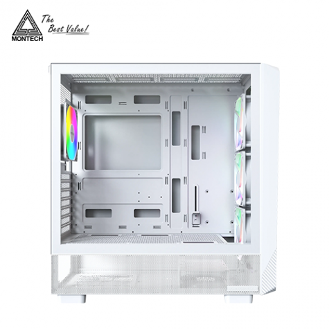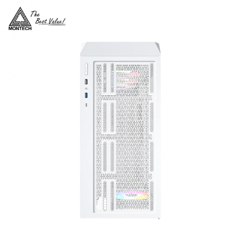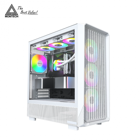 MONTECH X5 白 玻璃透側機殼 (E-ATX/Type-C/內建風扇前3後1/ARGB風扇/網孔面板/內建顯卡支撐架/顯卡410mm/塔散165mm)