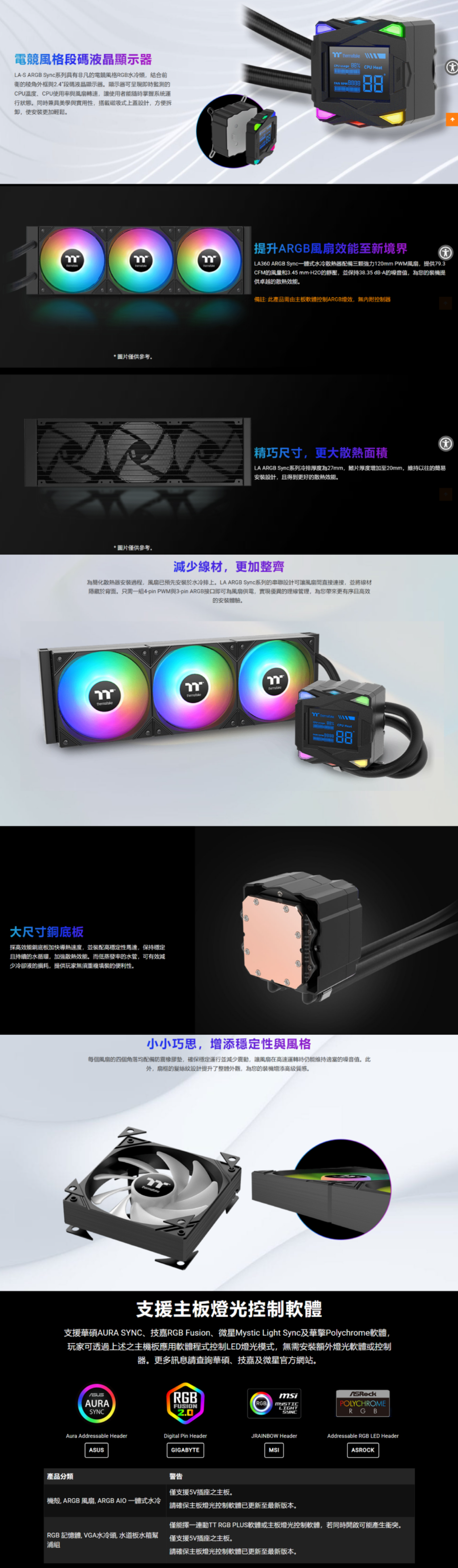 曜越 LA360-S ARGB Sync (360mm/液晶顯示水冷頭/預裝風扇/12cm風扇*3/三年保固)