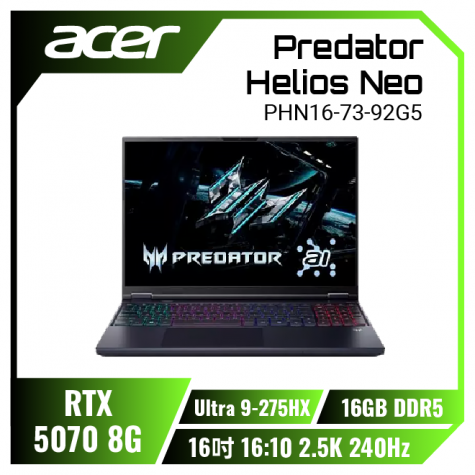 螢幕:16" 16:10/IPS/240Hz/霧面/LED背光 WQXGA 2560x1600 DCI-P3 100% 500 nits
