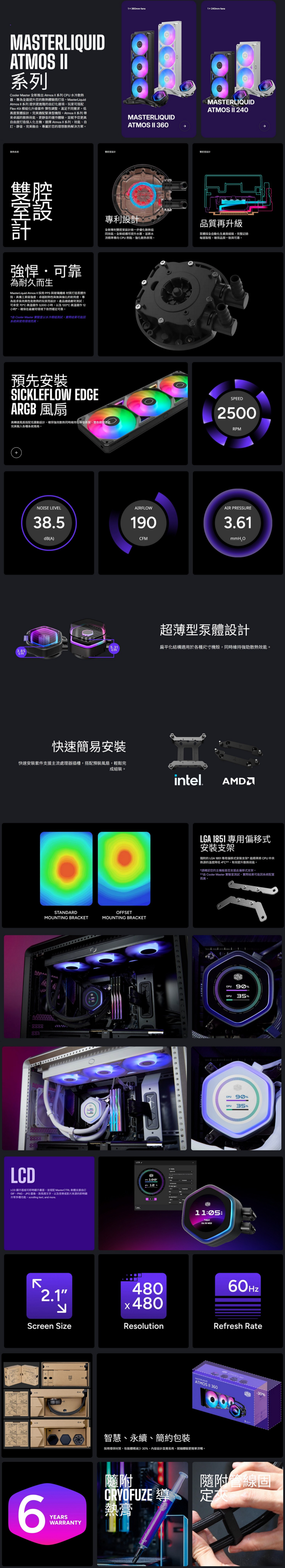 酷碼 MasterLiquid 360 Atmos II LCD ARGB 白 (360mm/2.1″LCD水冷頭/雙腔室設計/預裝一體式風扇/六年保)