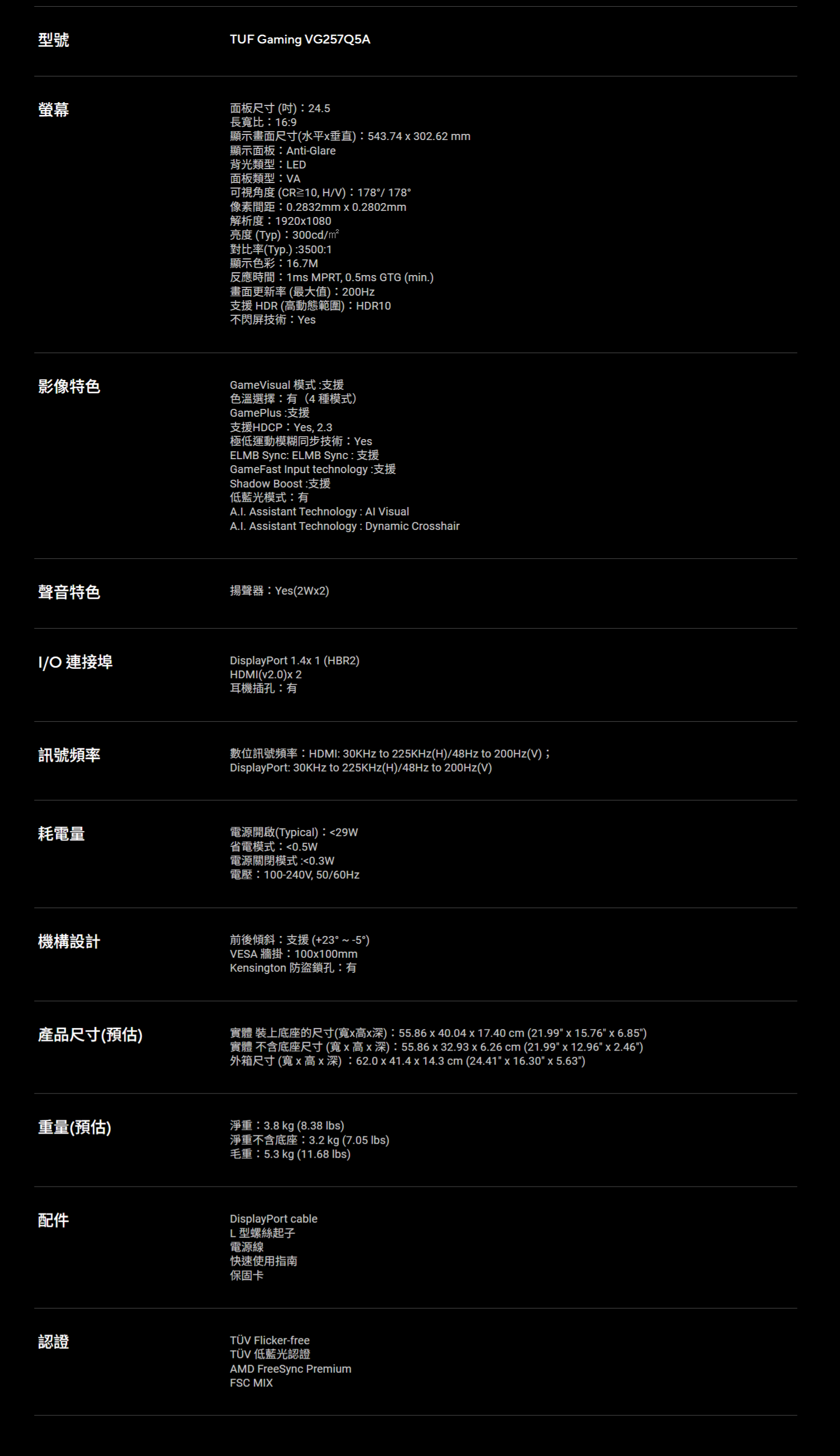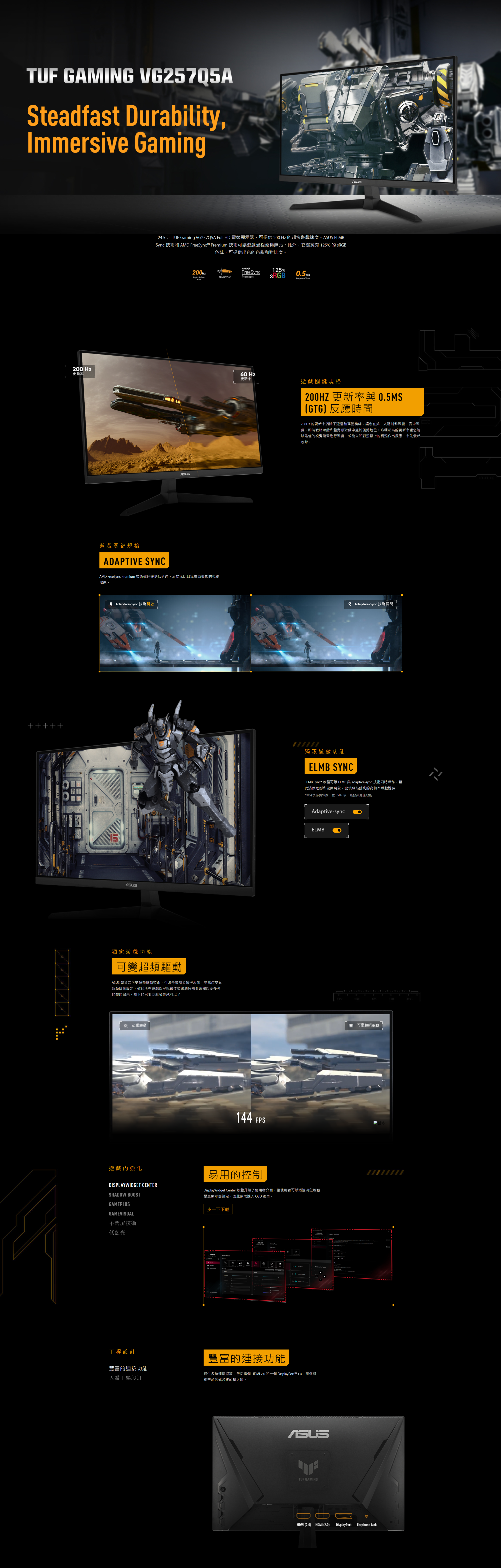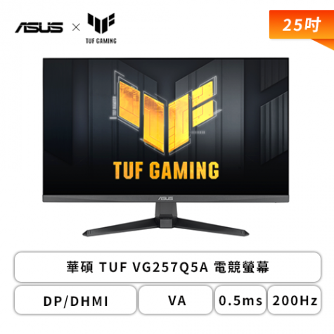 【25型】華碩 TUF VG257Q5A 電競螢幕 (DP/DHMI/VA/0.5ms/200Hz/FreeSync Premium/HDR10/可變超頻驅動/內建喇叭/三年保固)