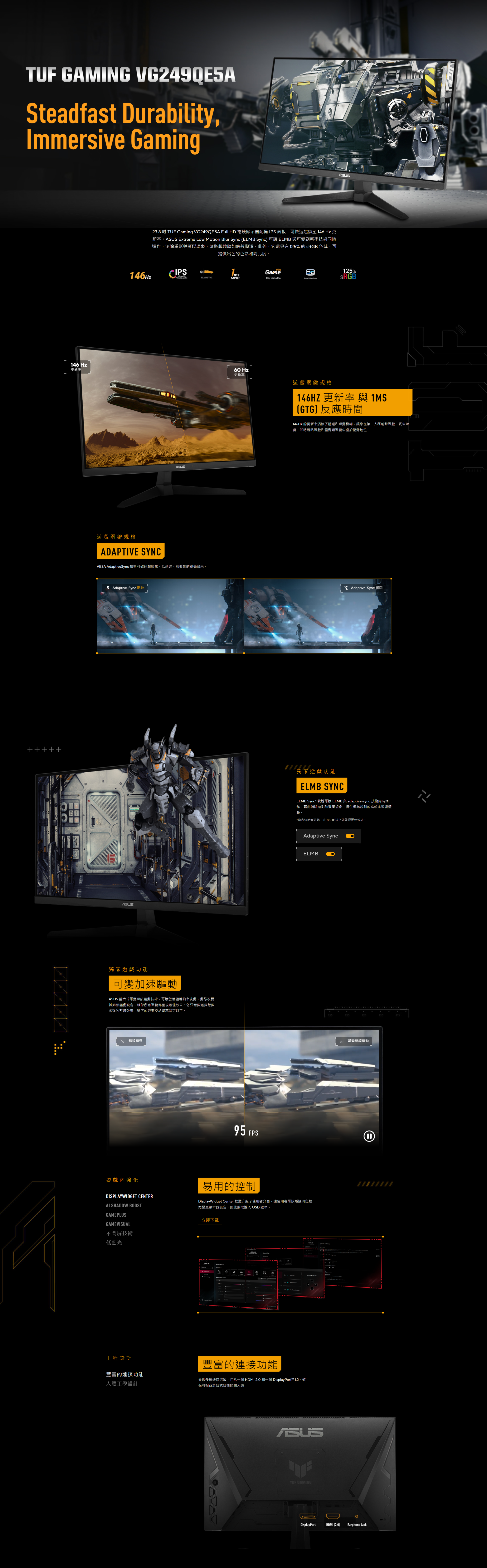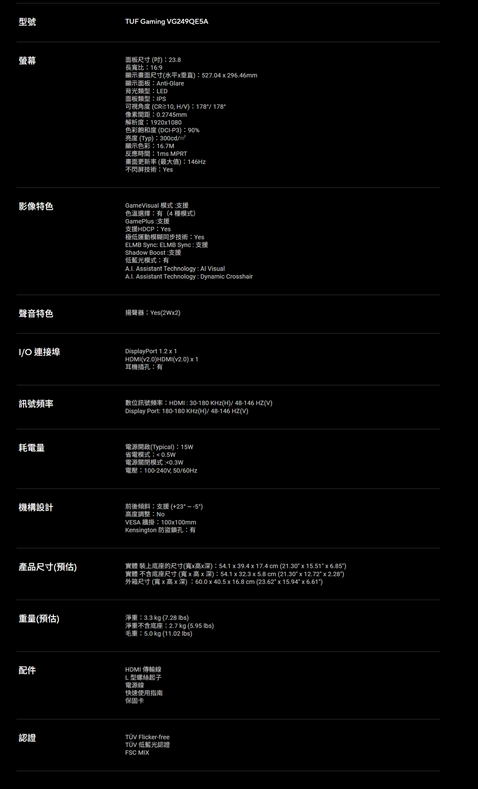 【24型】華碩 TUF VG249QE5A 電競螢幕 (DP/DHMI/IPS/1ms/146Hz/Adaptive Sync/可變超頻驅動/內建喇叭/三年保固)