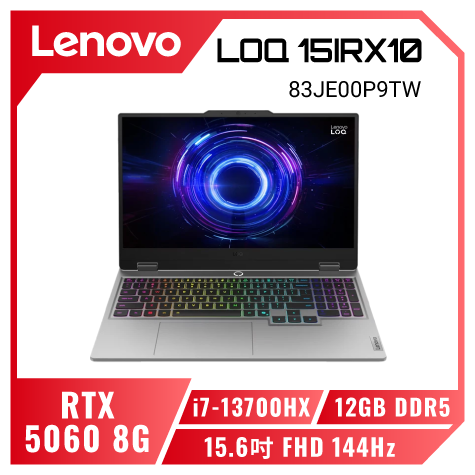 Lenovo LOQ 15IRX10 83JE00P9TW暴風灰 聯想極致強效電競筆電/i7-13700HX/RTX5060 8G/12GB DDR5/512GB PCIe/15.6吋 FHD 144Hz/W11/2年保