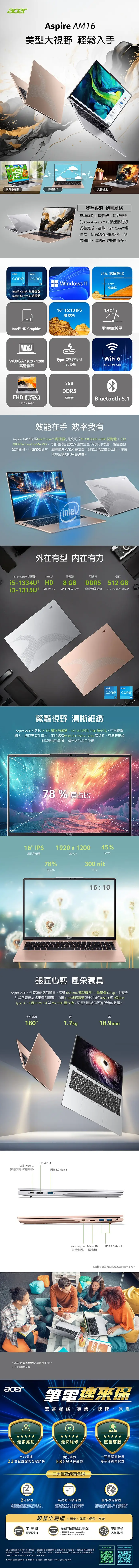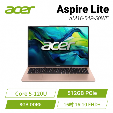 acer lite AM16-54P-50WF 金 宏碁高效能筆電/Core 5-120U/8GB DDR5/512GB PCIe/16吋 16:10 FHD+/W11