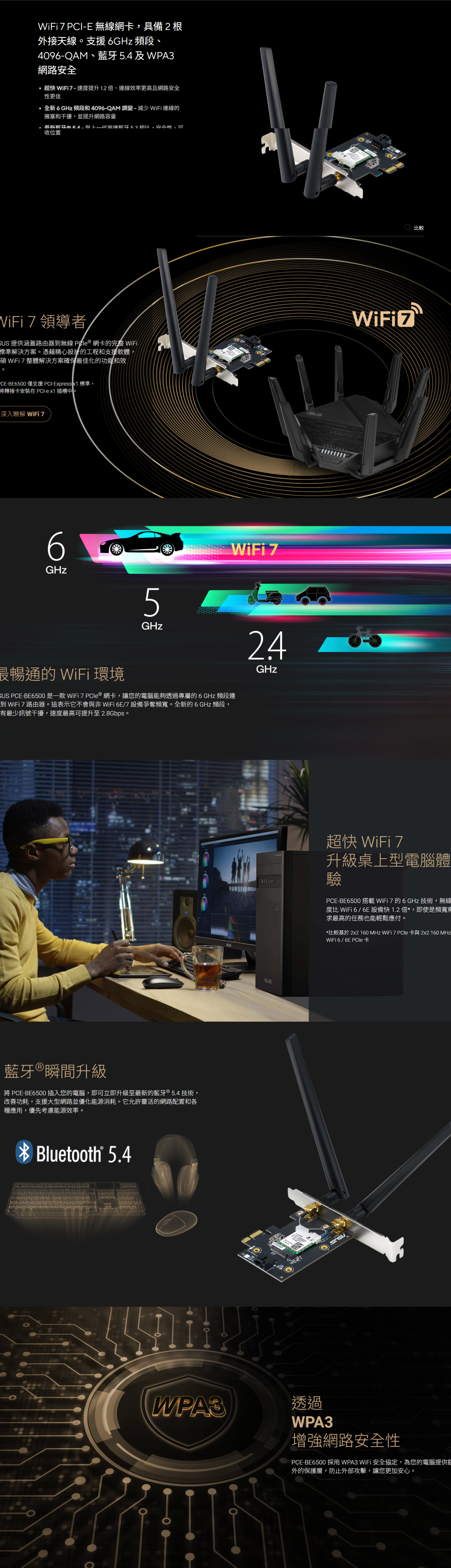 ASUS 華碩PCE-BE6500 無線網卡 WiFi 7 PCIe 網卡 分享器 Wifi 接收器 無線網路卡
