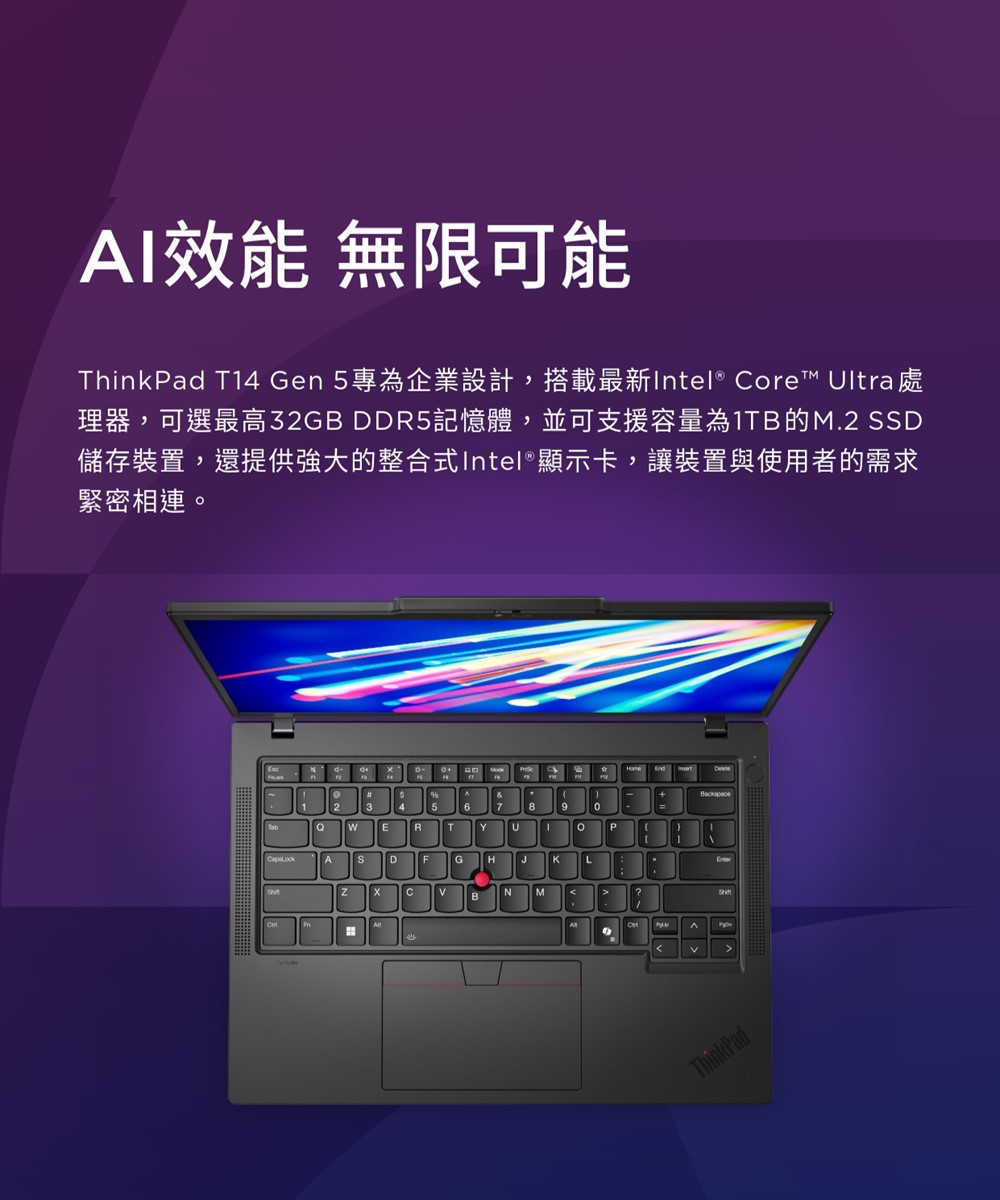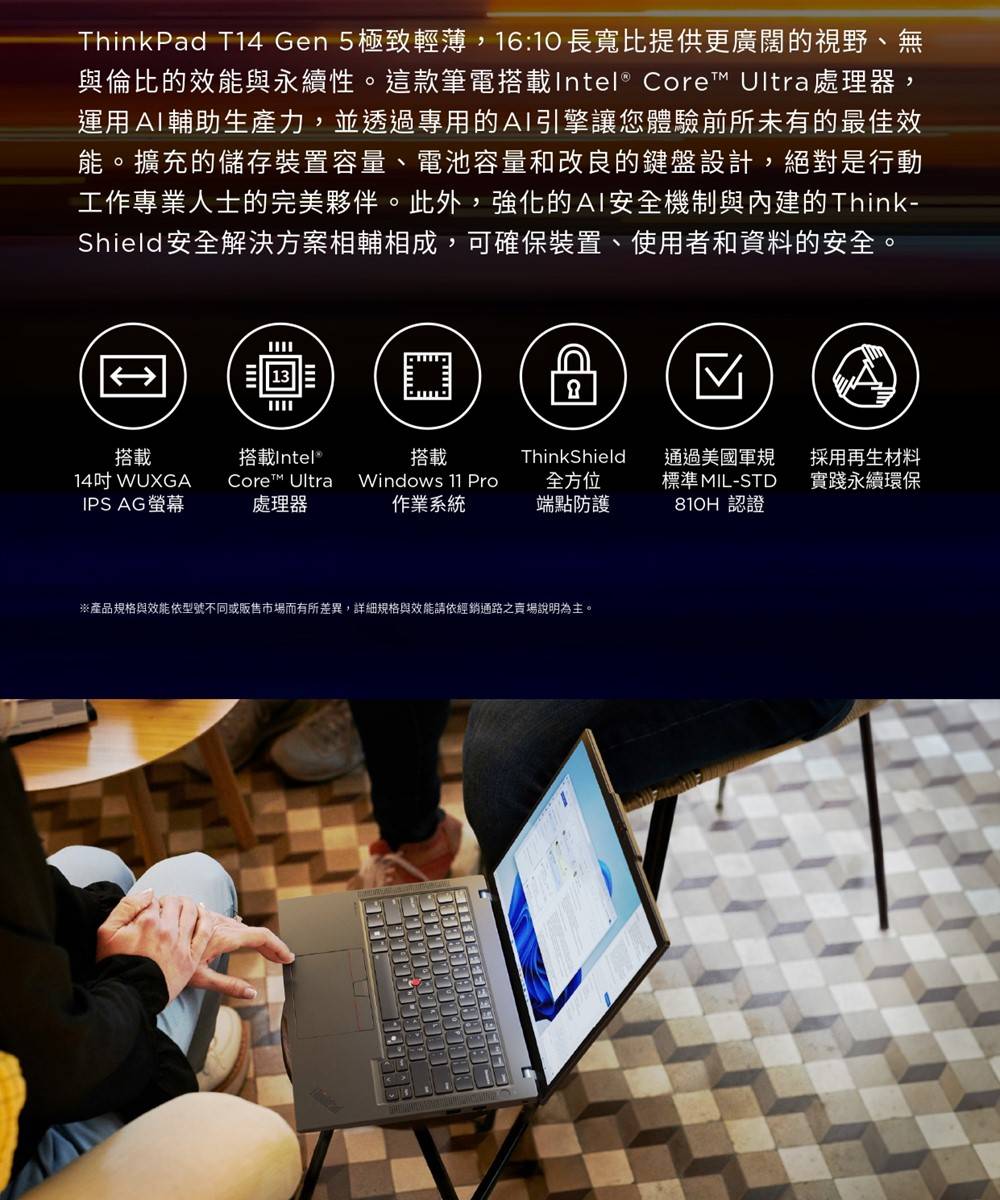 Lenovo ThinkPad T14 Gen5 聯想商用筆電/Ultra5-125H/16G D5/1TB SSD/14吋 WUXGA/Win11 Pro/3年到府維修保固