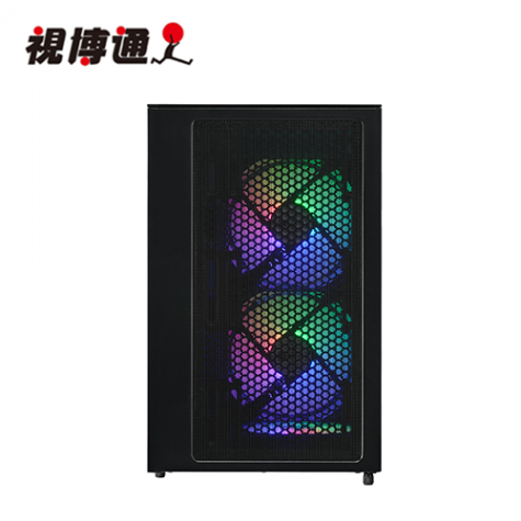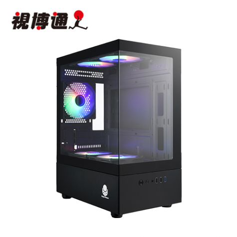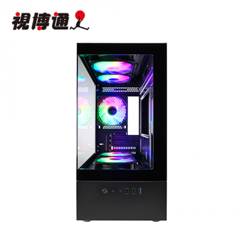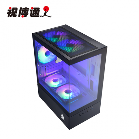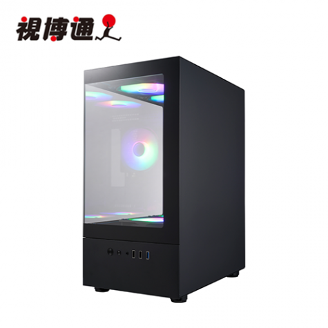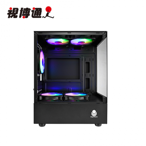 視博通 LEX100M 黑 全景玻璃機殼 (M-ATX/內建風扇上2底2後1/RGB定光/顯卡315mm/塔散165mm)