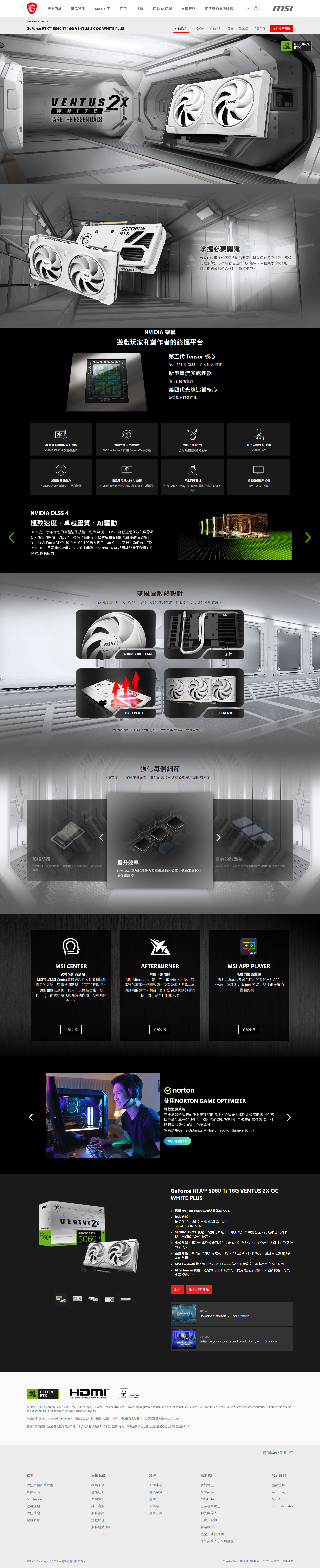微星 RTX 5060Ti 16G VENTUS 2X OC WHITE PLUS (std:2572MHz/雙風扇/註冊四年保/白色/長22.7cm)