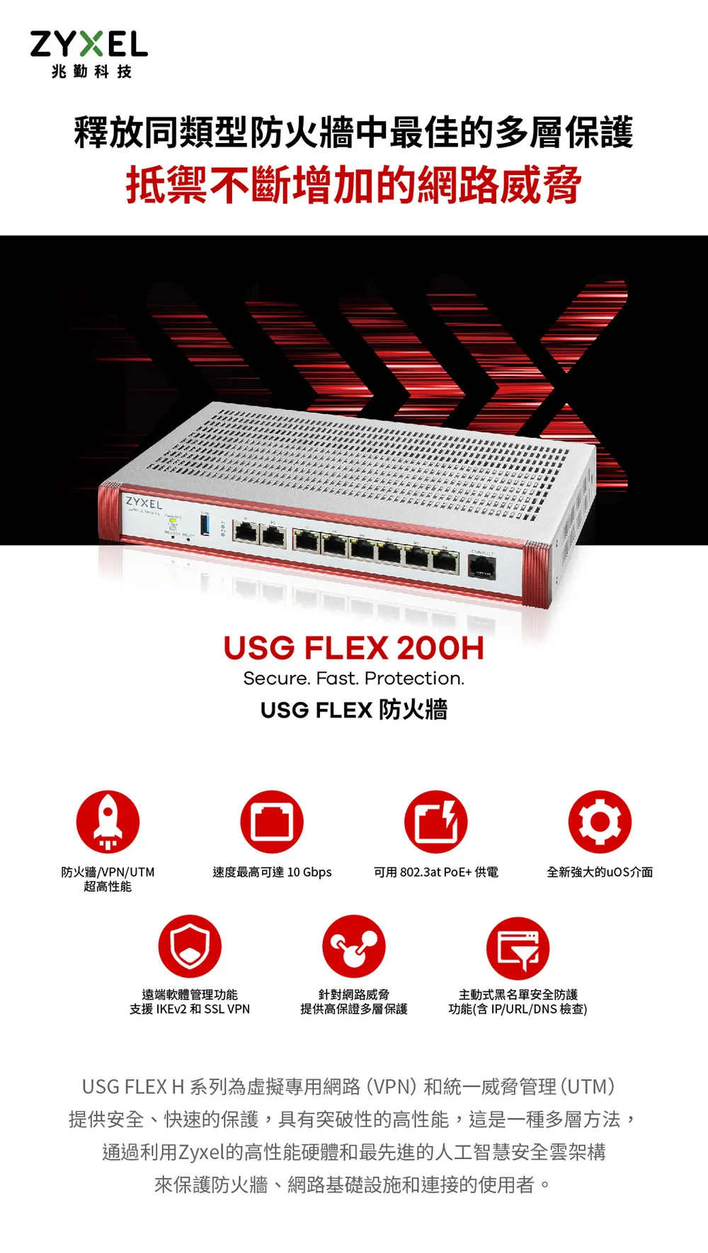 - 防火牆效能可達 6.5 Gbps