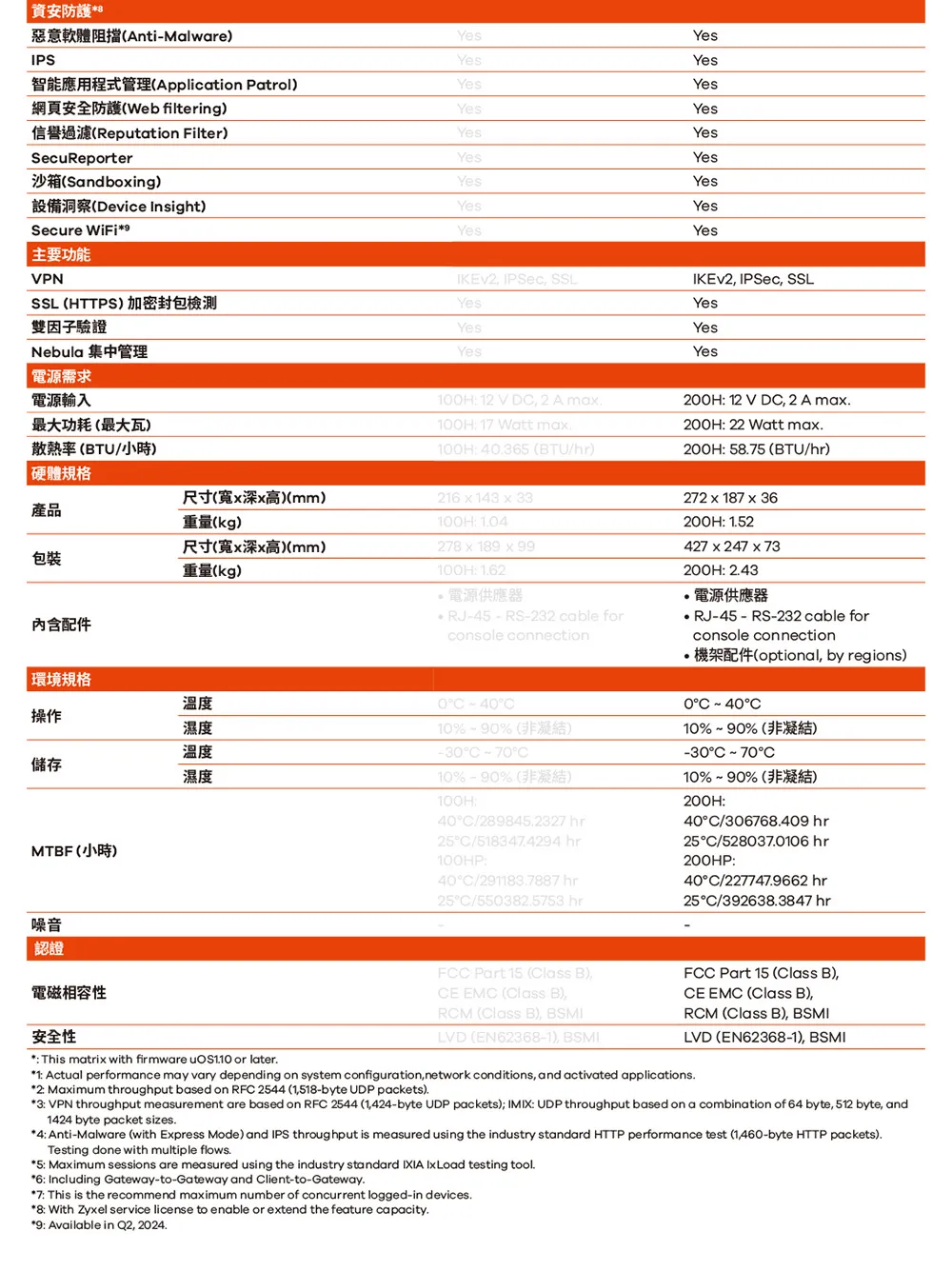 - IPS 吞吐量可達 2.5 Gbps,Anti-virus 吞吐量可達 1.8 Gbps,AV+IDP 吞吐量可達 1.8 Gbps。(需另購 Gold 資安軟體更新授權)