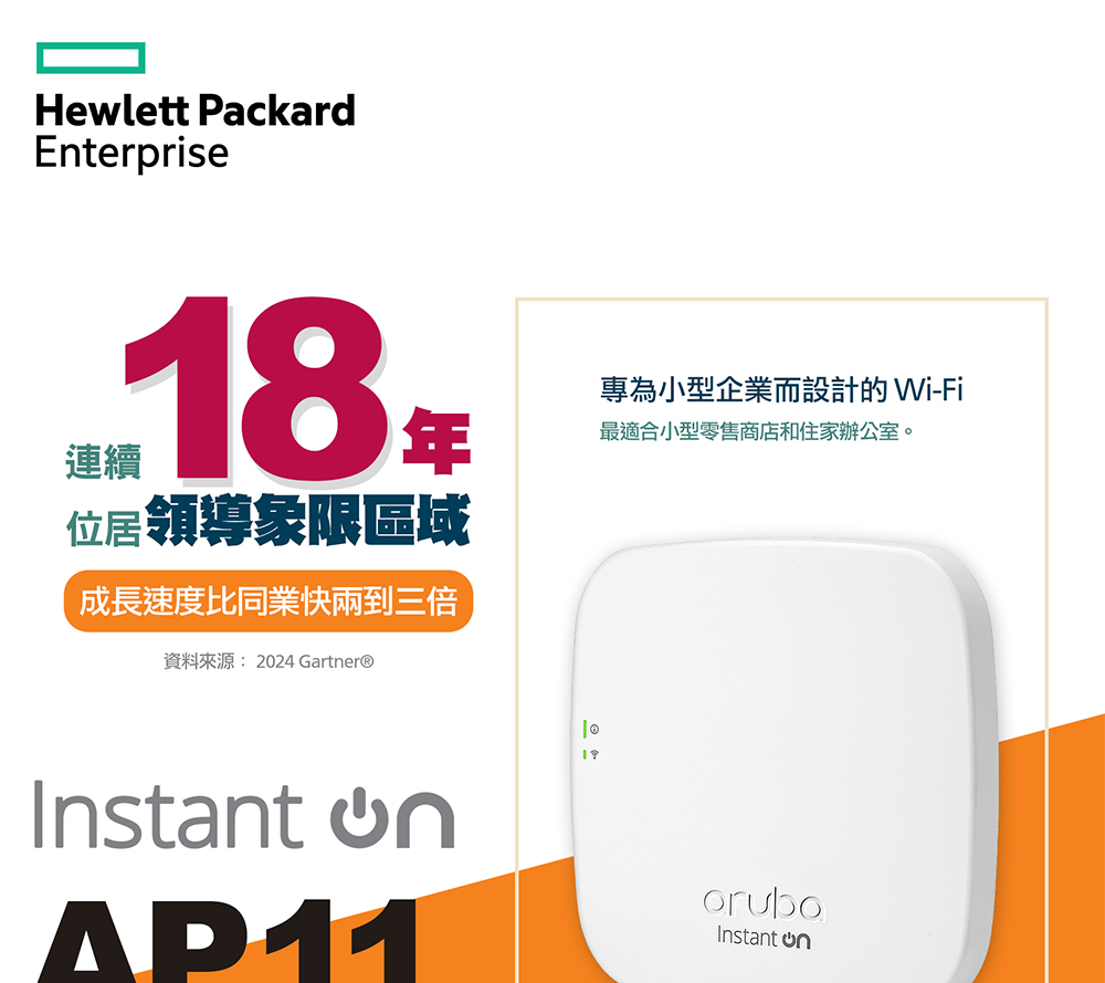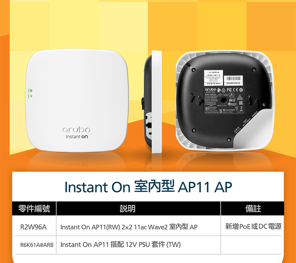 Aruba Instant On AP11 商用無線網路基地台/室內型/雙頻/Wi-Fi5 (R2W96A)