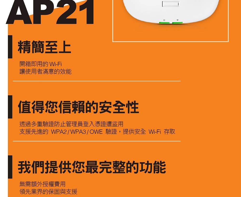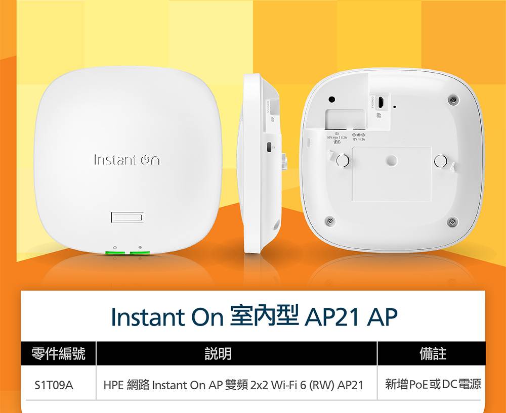 Aruba HPE Networking Instant On AP21 商用無線網路基地台/室內型/雙頻/Wi-Fi6 (S1T09A)