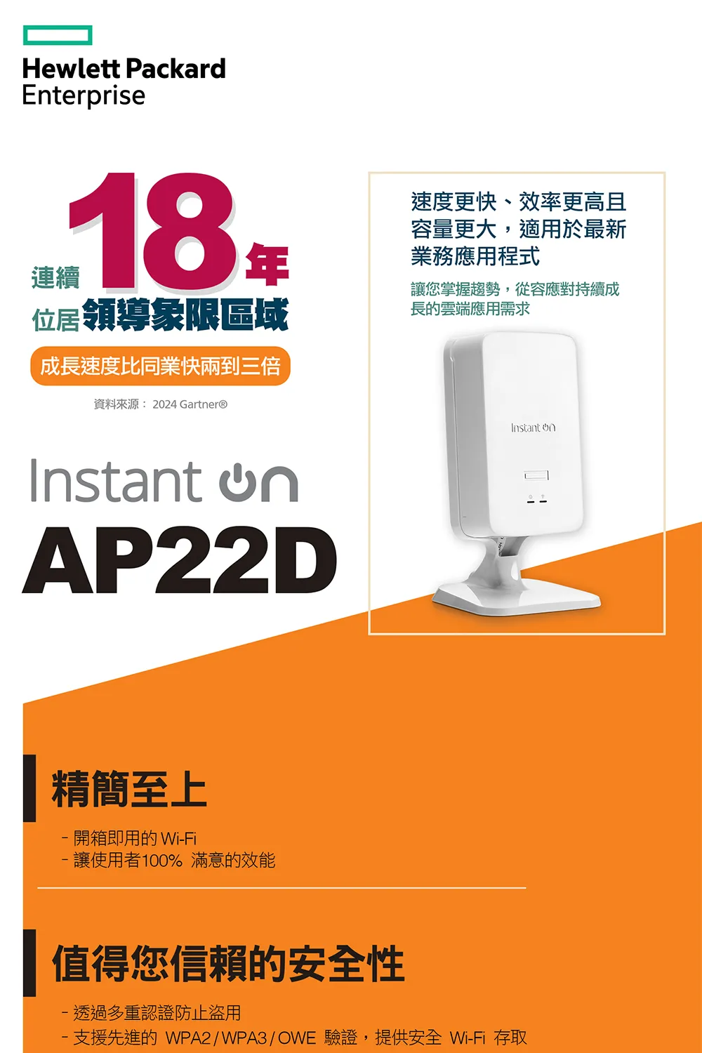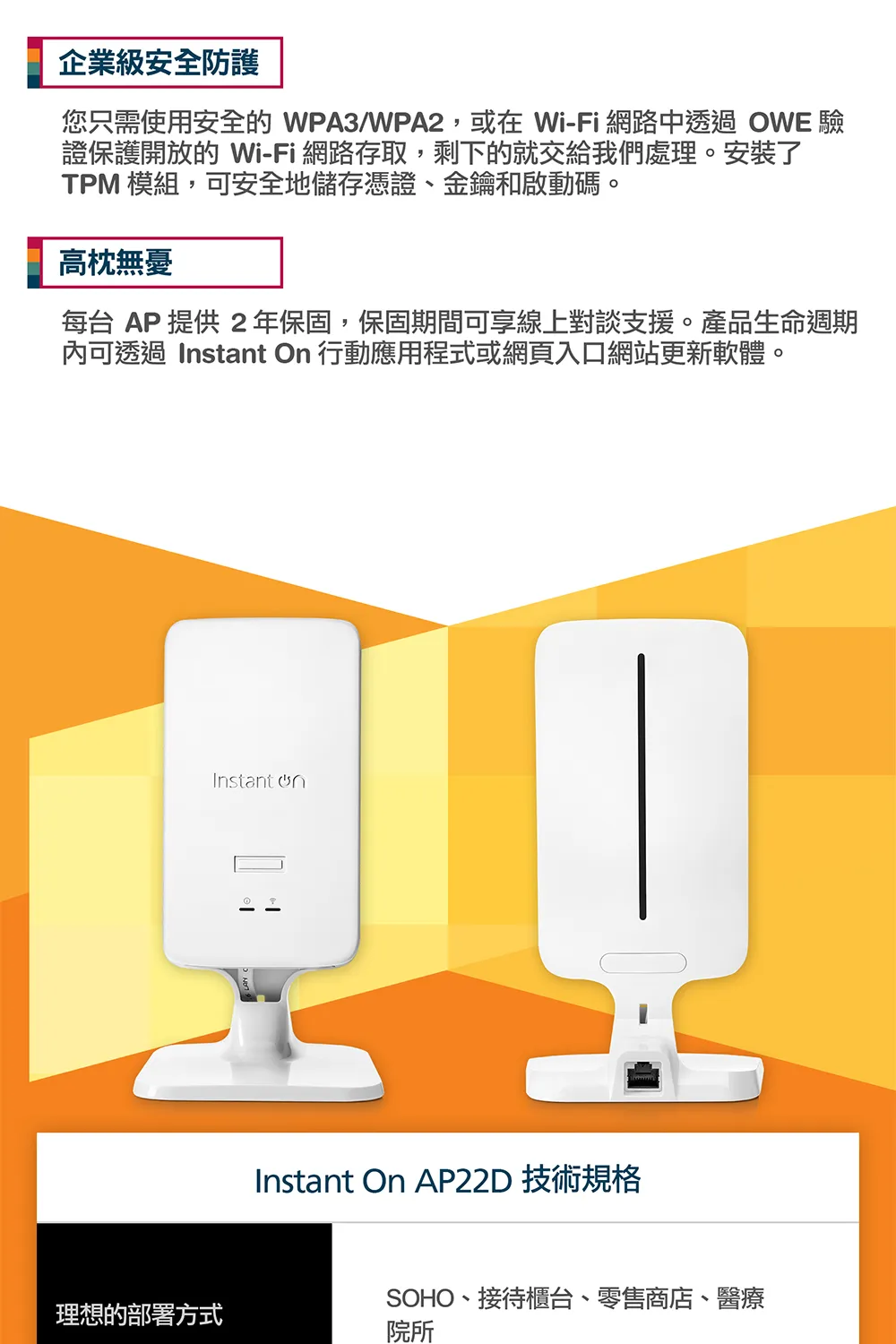Aruba HPE Networking Instant On AP22D 商用無線網路基地台/桌上型/雙頻/Wi-Fi6 (S1U76A)