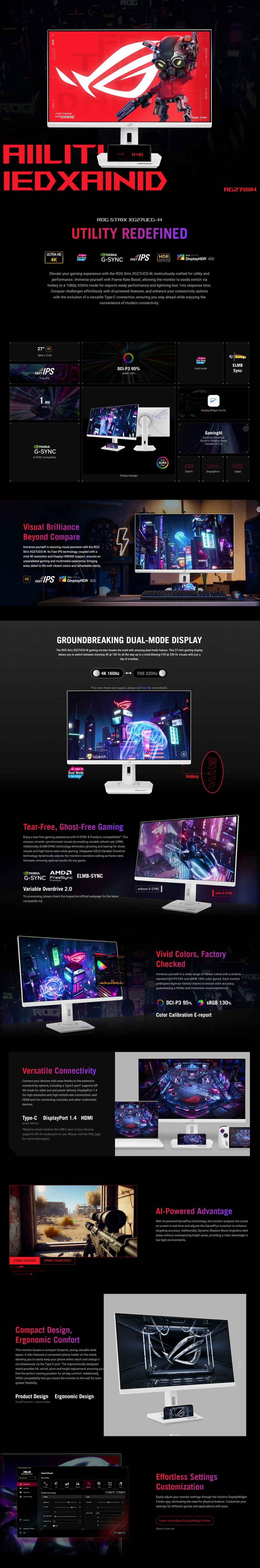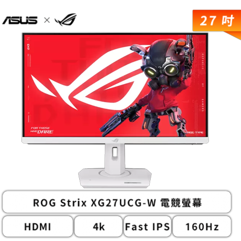 【27型】華碩 ROG Strix XG27UCG-W 電競螢幕 (DP/HDMI/Type-C/Fast IPS/4K/1ms/160Hz(FHD 320Hz)/FreeSync Premium/G-Sync/HDR400/雙模式切換/可變超頻驅動 2.0/130% sRGB/可升降/可旋轉/無喇叭/三年保固)