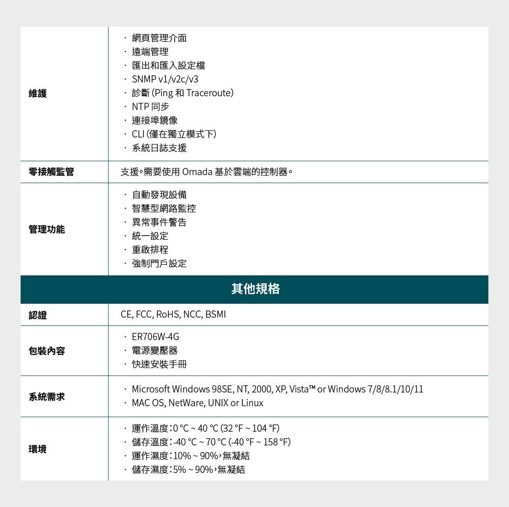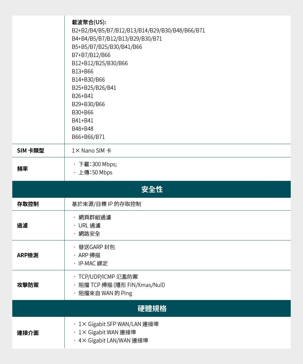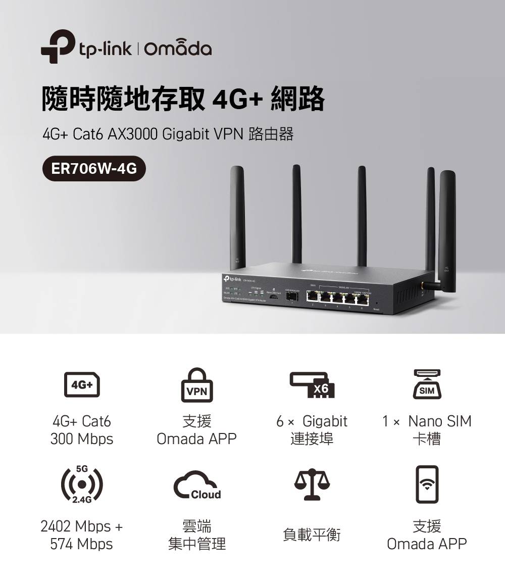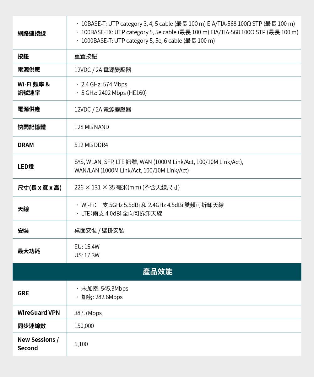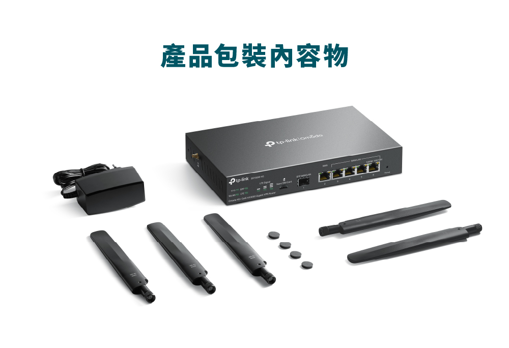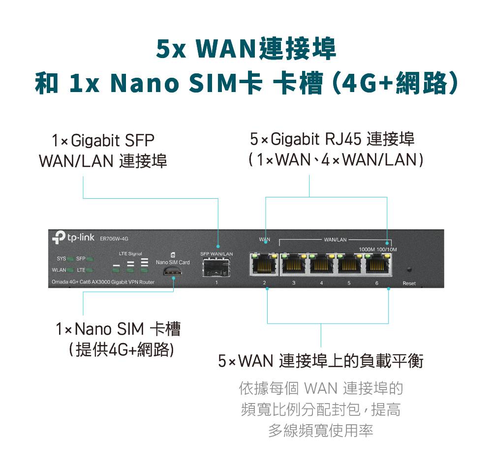 - 1× Gigabit WAN 連接埠、5× Gigabit WAN/LAN 連接埠