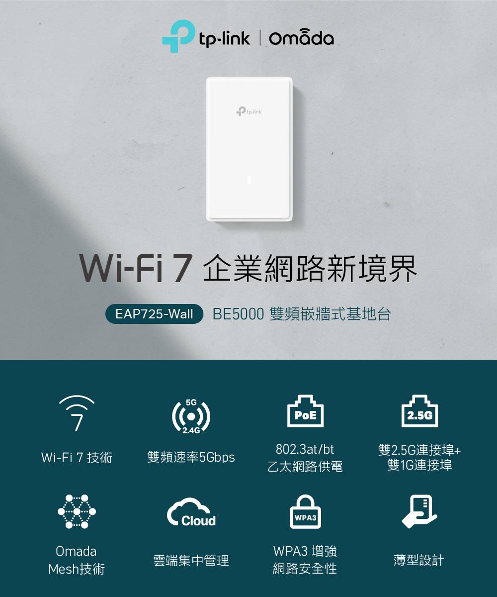 TP-Link EAP725-Wall 商用無線網路基地台/嵌牆式/BE5000/WiFi7
